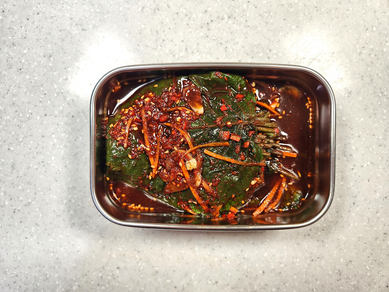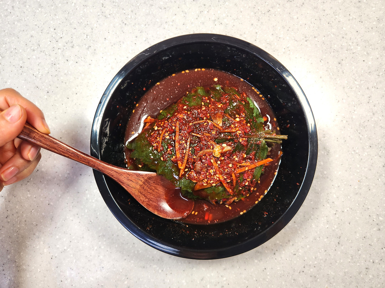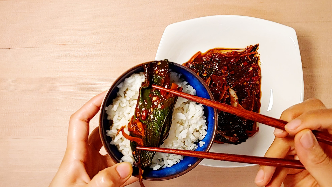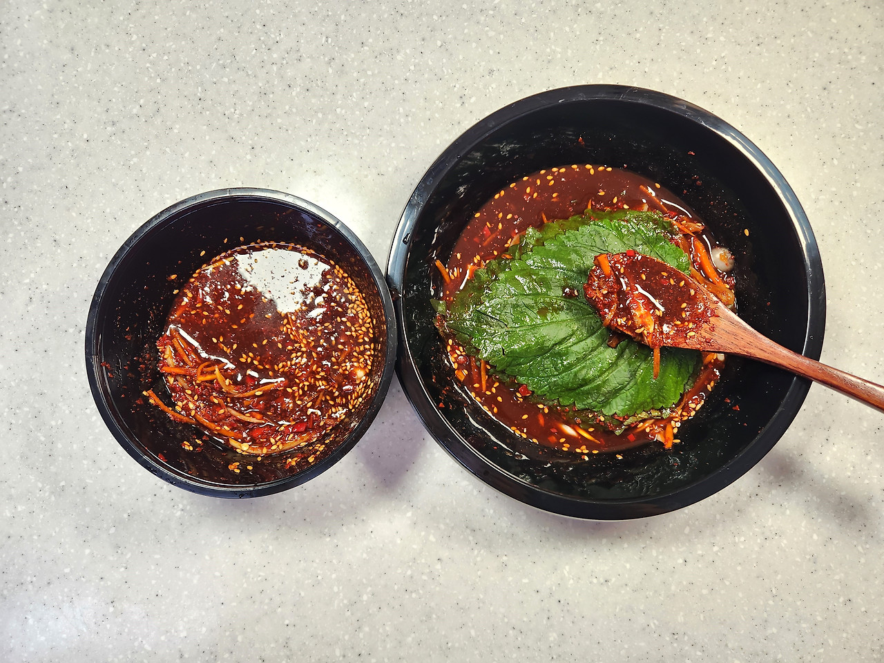(양념장이 모자르면 아래 가라앉은 양념장을 떠서 깻잎 위에 발라주세요.)