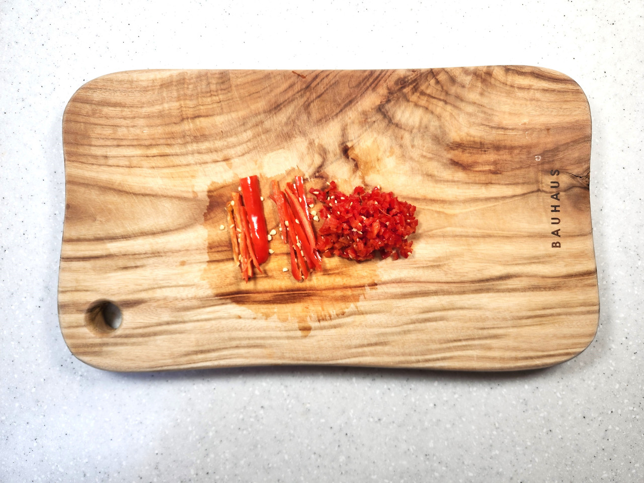 홍고추는 잘게 다진 다음 양념장 재료를 넣고 잘 섞어줍니다.