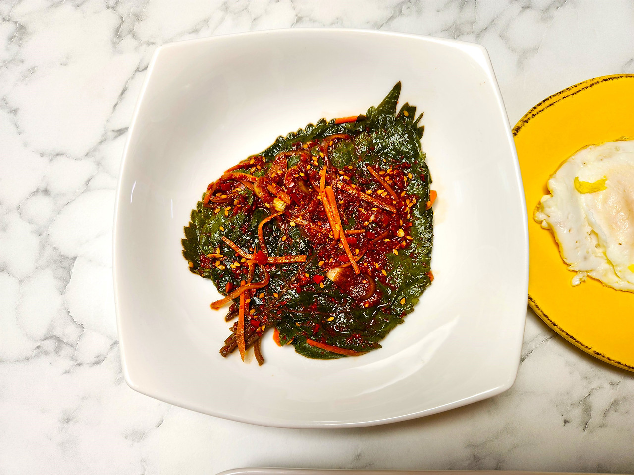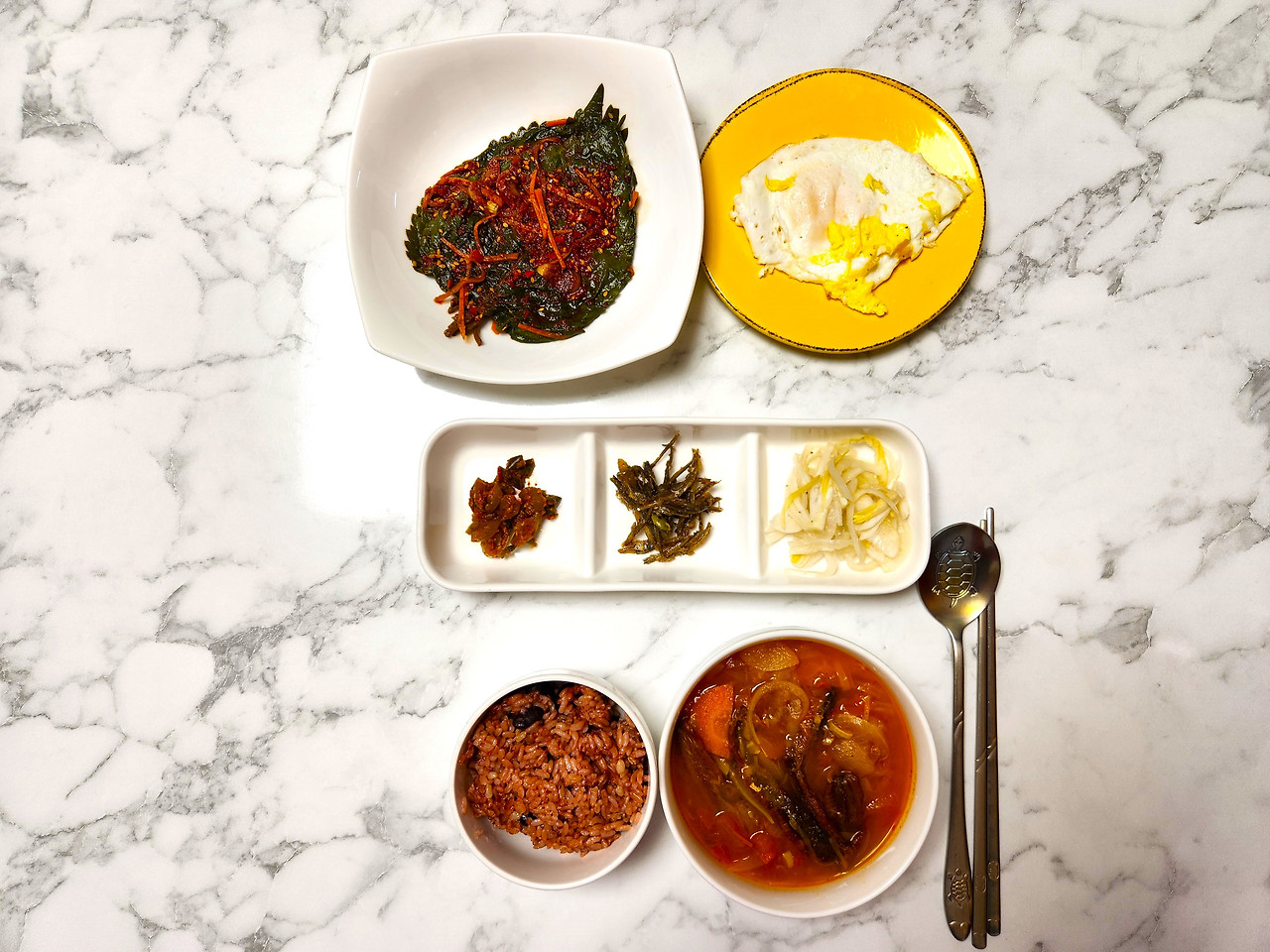 밥도둑 깻잎장아찌 하나면 별다른 반찬이 필요없죠? 강낭콩밥에 저염김치찌개, 계란후라이, 깻잎장아찌면 한공기 뚝딱이에요.