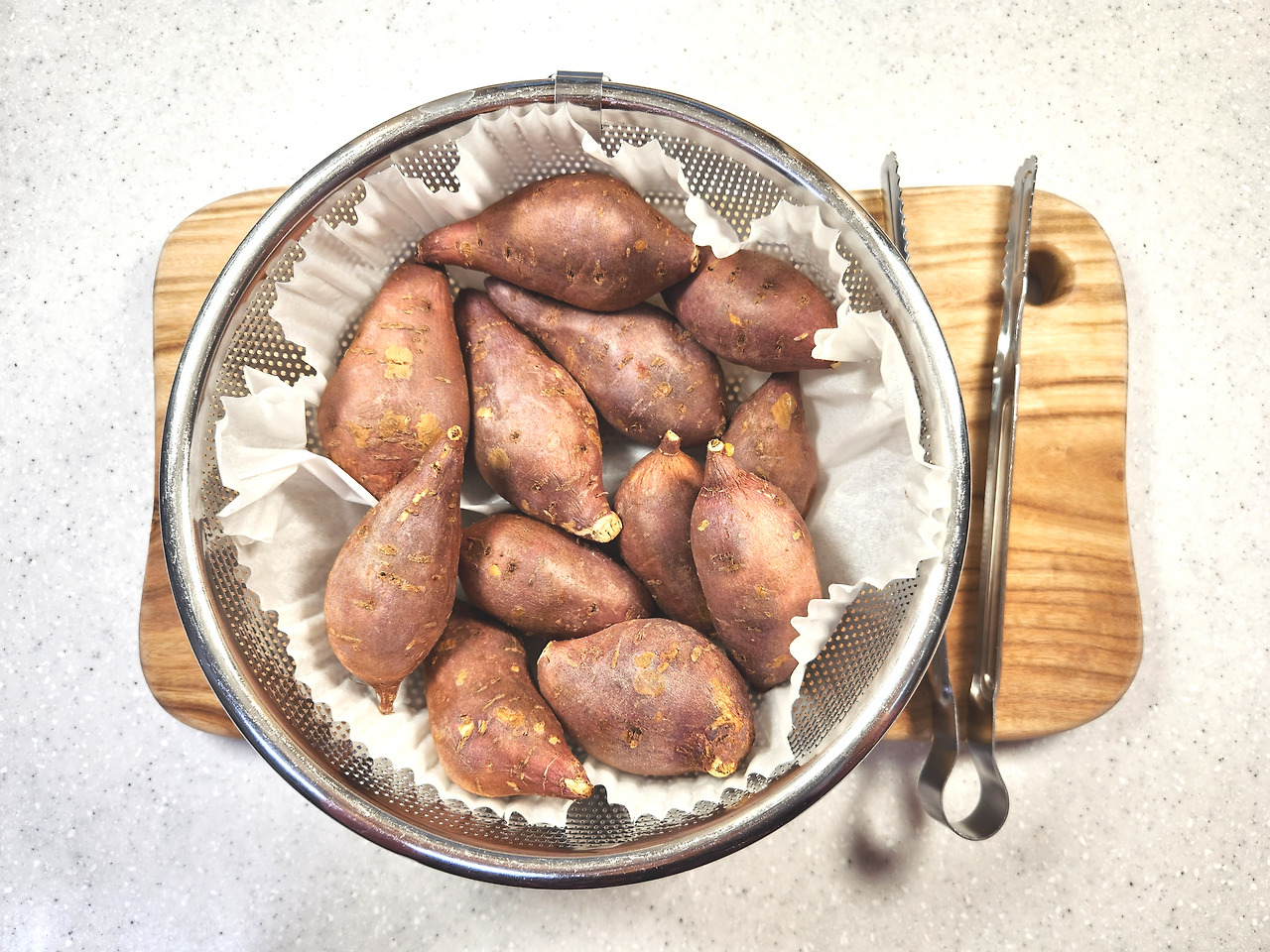고구마를 뒤집은 뒤 다시 200도에서 20분 구워줍니다.