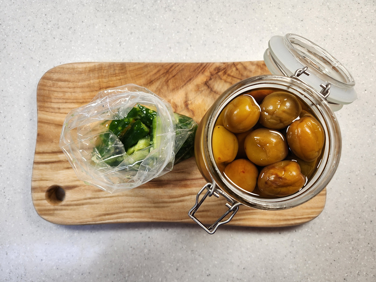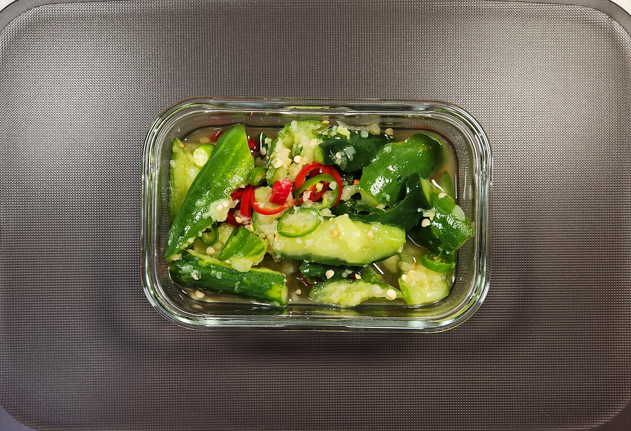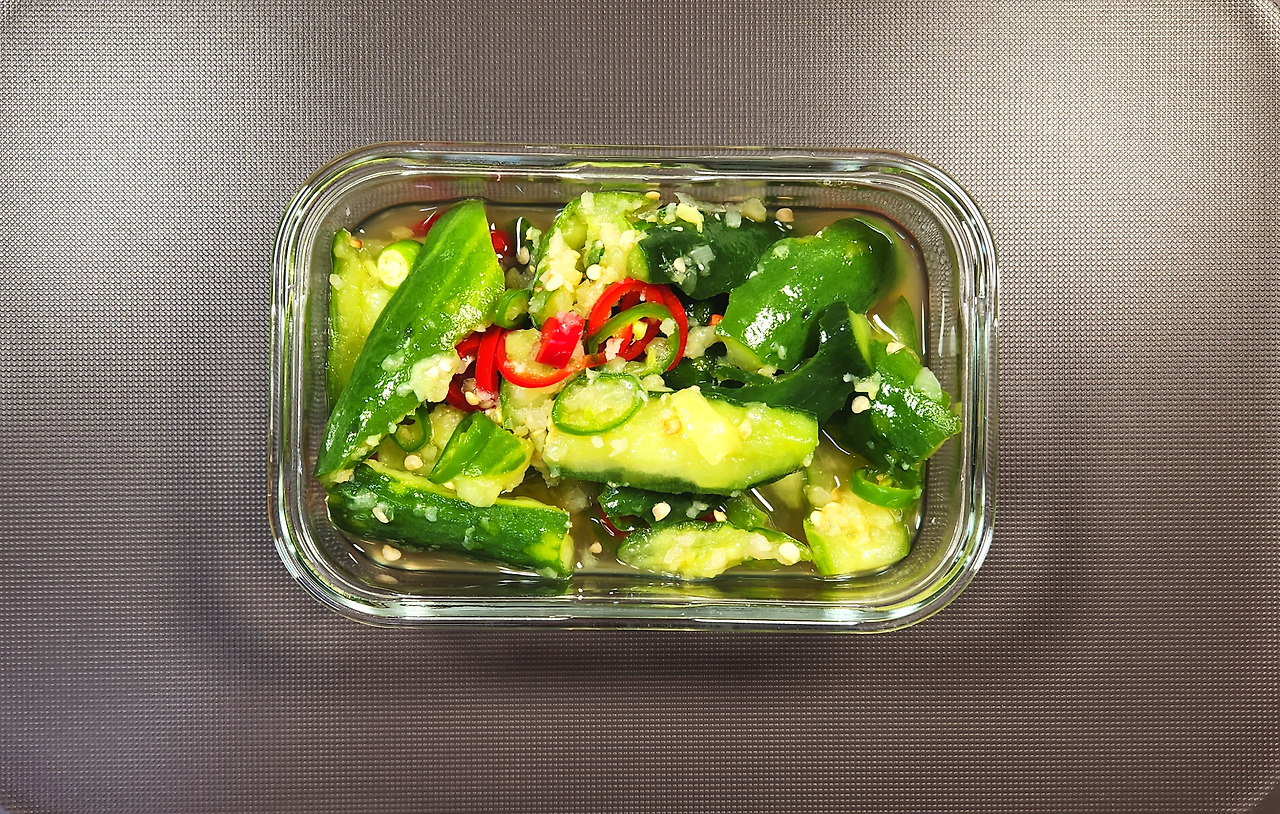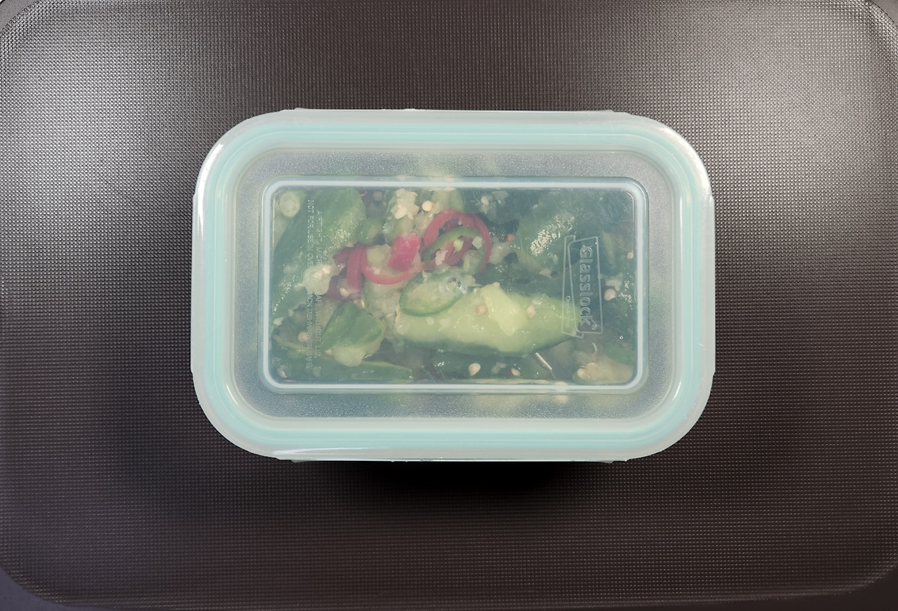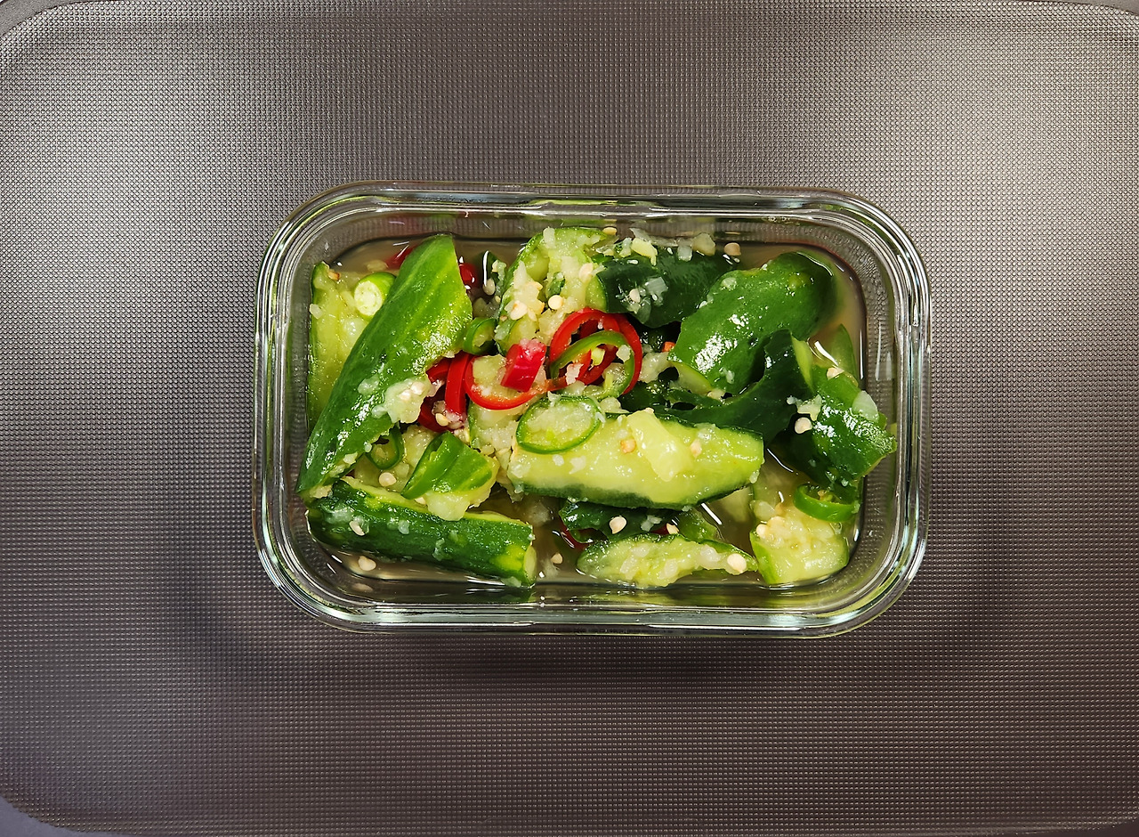 오이가 3개 있었는데 한 개씩 그때그때 무쳐먹으니 간편하기도 하고 더 아삭아삭한거 있죠? 시댁에 보낼 건 반찬통에 담아 남편이 배달했습니다. 번거롭고 귀찮더라도 비싼 채소값 생각하면 시댁에서 여러 식재료를 공수해 먹는게 정말 감사할 따름이에요. ㅠㅠ (이모님께서 직접 농사 지으신 쌀을 주셔서 너무 잘 먹고 있습니다.)