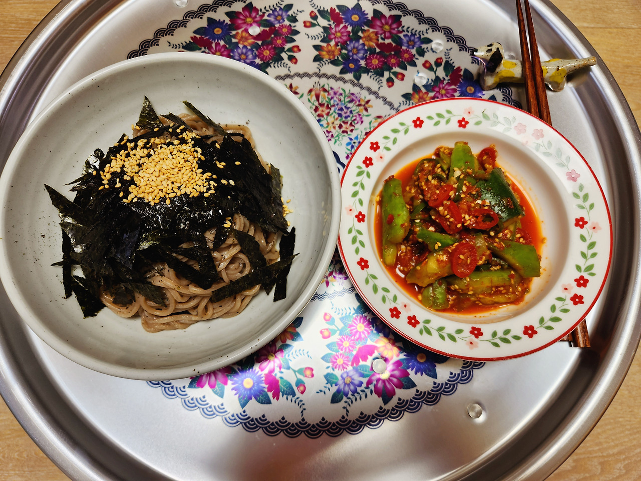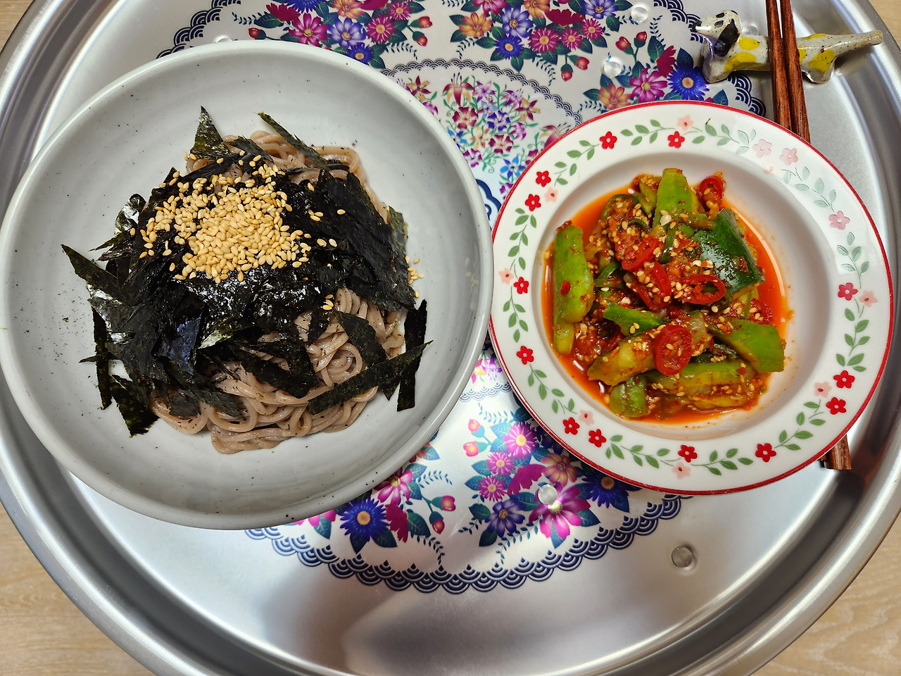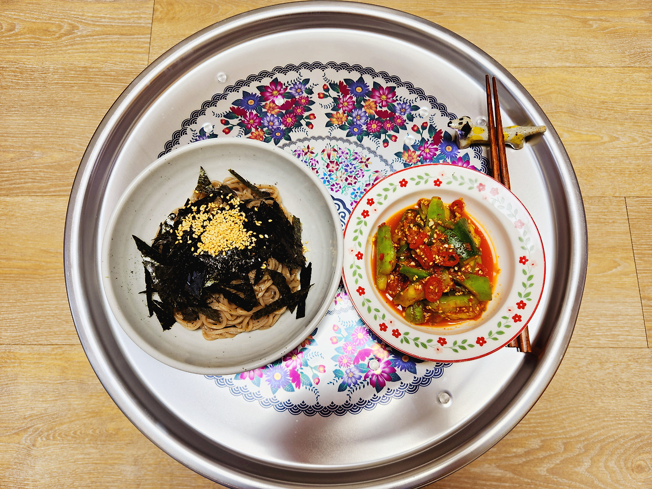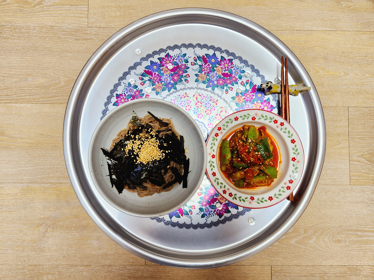 집에서 간소하게 들기름 막국수와 오이탕탕이 얼른 만들어서 1일1채식 해봤습니다. (멸치액젓 들어가서 페스코 채식 됐네요. 헠,,,비건은 역시 머나먼 길인가? ㅠㅠ) 혼자서 먹을 땐 여러가지 차리기가 번거롭더라고요. 저희집에서 먹을 땐 고춧가루 1큰술과 통깨 1큰술 넣어서 매콤하게 무쳐봤어요.