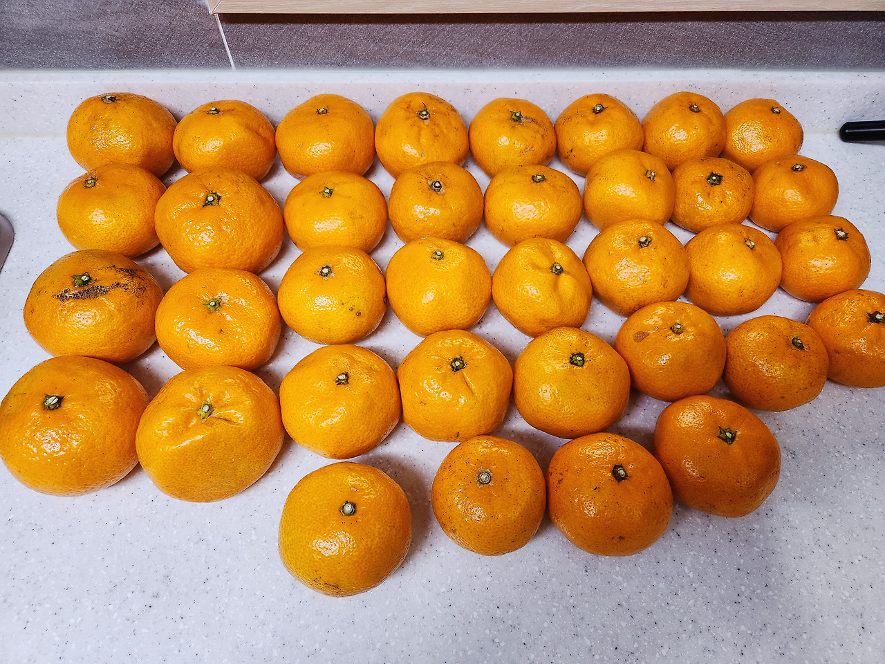 얼마전 시댁에서 가져온 귤 한박스. 남편이 차를 끌고 가서 진공쌀통과 반찬 몇 가지를 함께 바리바리 싸가지고 왔다.