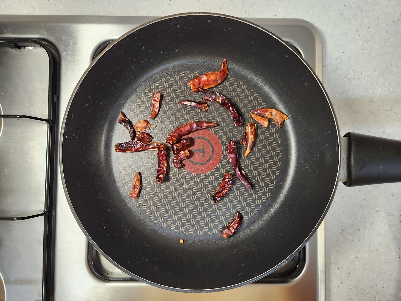 (오래된 건고추의 묵은 잡내가 날아가고 고소하면서 맛있는 매운맛이 생성됩니다.)