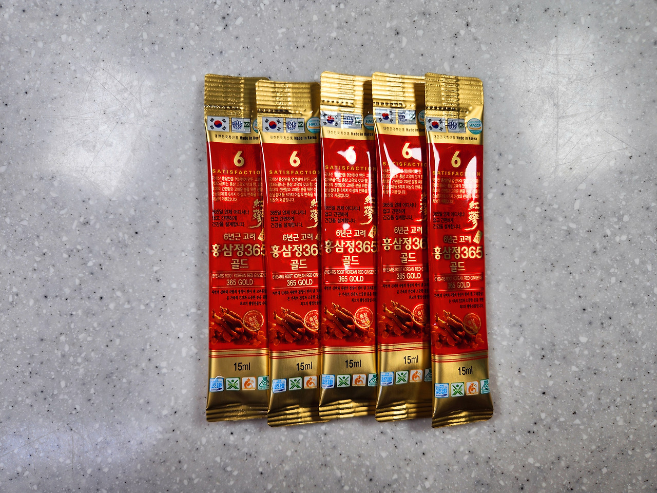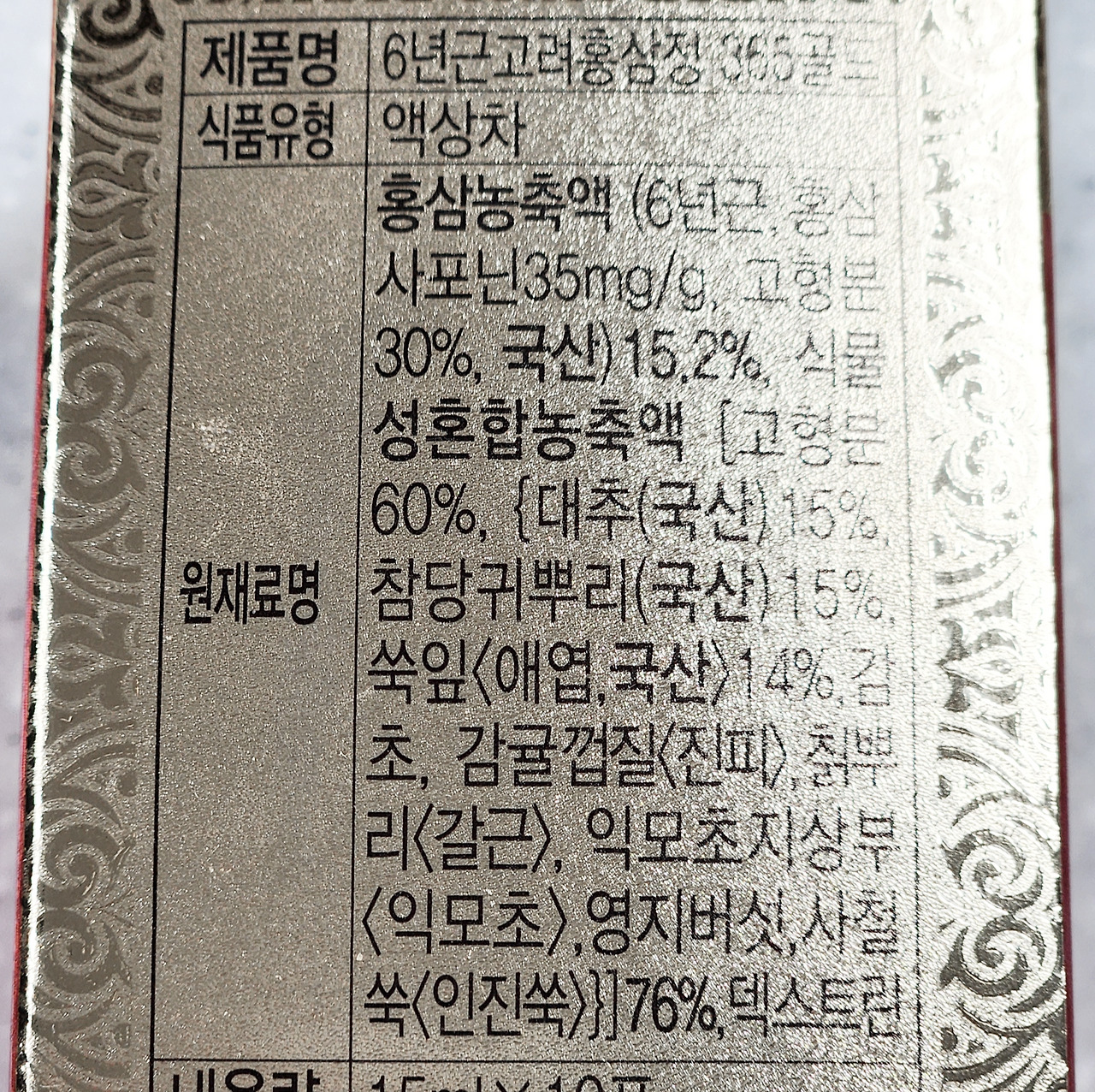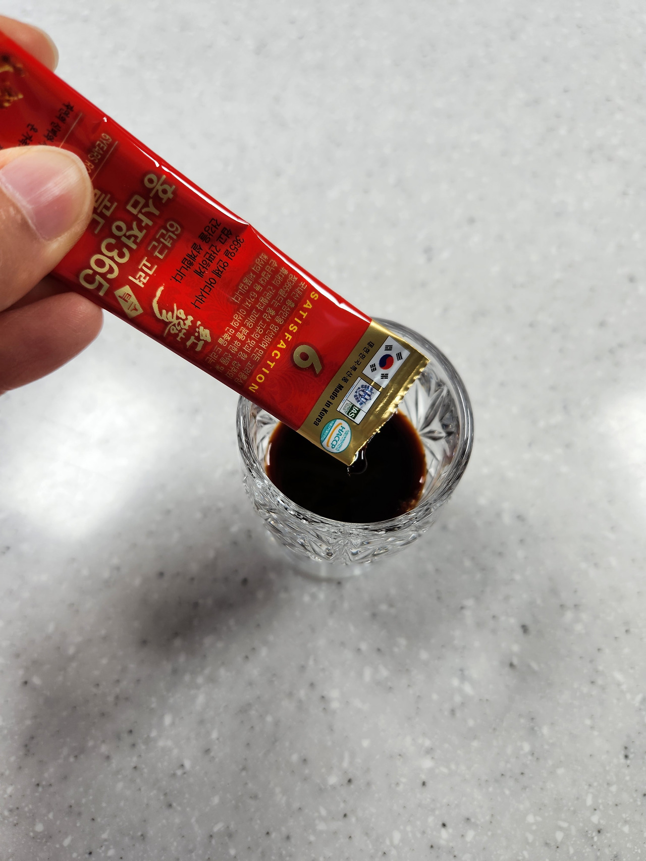 홍삼농축액이 많이 들었고 다른 식물성혼합농축액으로 동물성 성분은 없는 것 같다. 덱스트린은 조금 더 점성 있게 만들려고 넣은 것 같은데 이것도 칼로리를 무시할 수 없다.