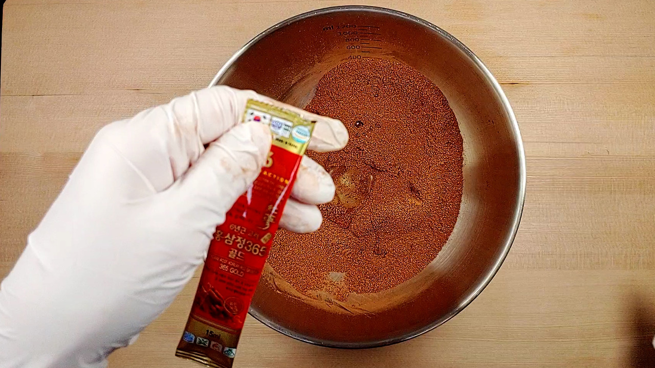 액상 알룰로스, 홍삼스틱을 넣고 알뜰주걱으로 잘 섞어주세요.