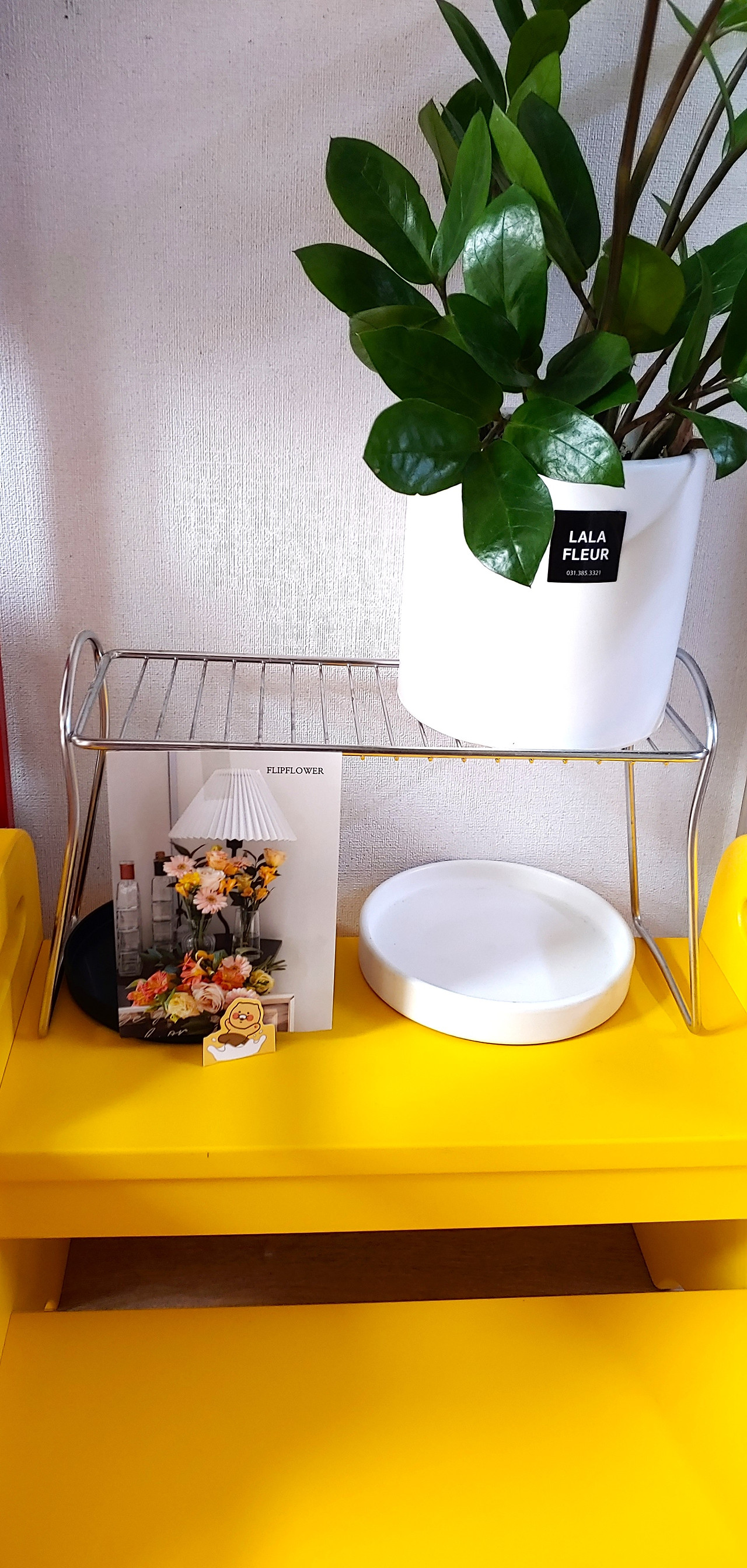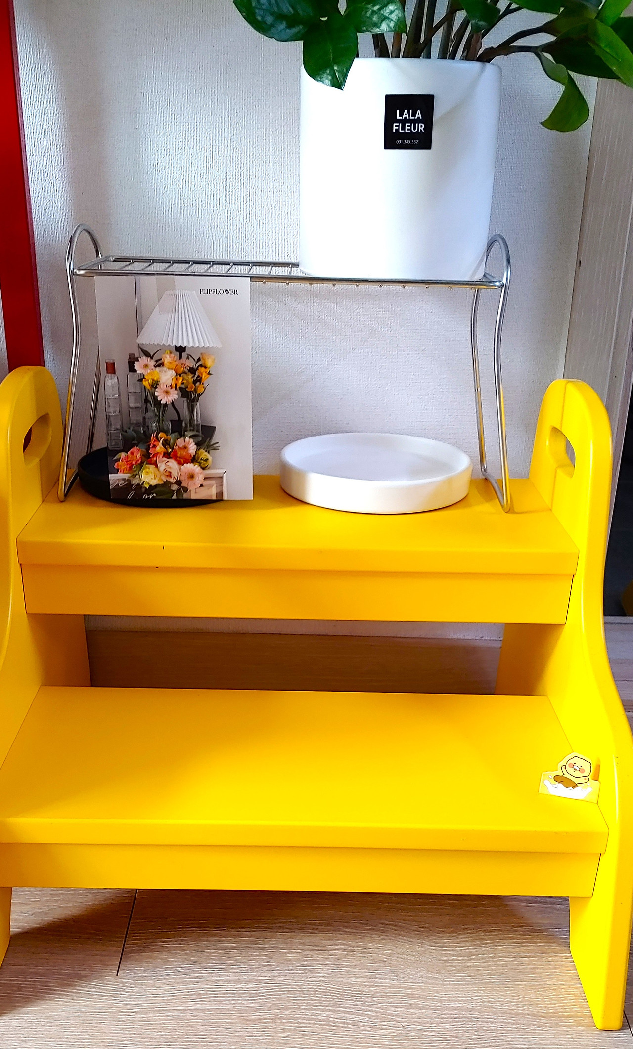 화분 받침으로 쓰고 있는 스테퍼에 어느새 올라가 있는 춘식이