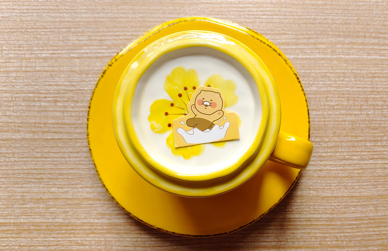 커피 스팀으로 뜨끈하게 지지고 있는 춘식이