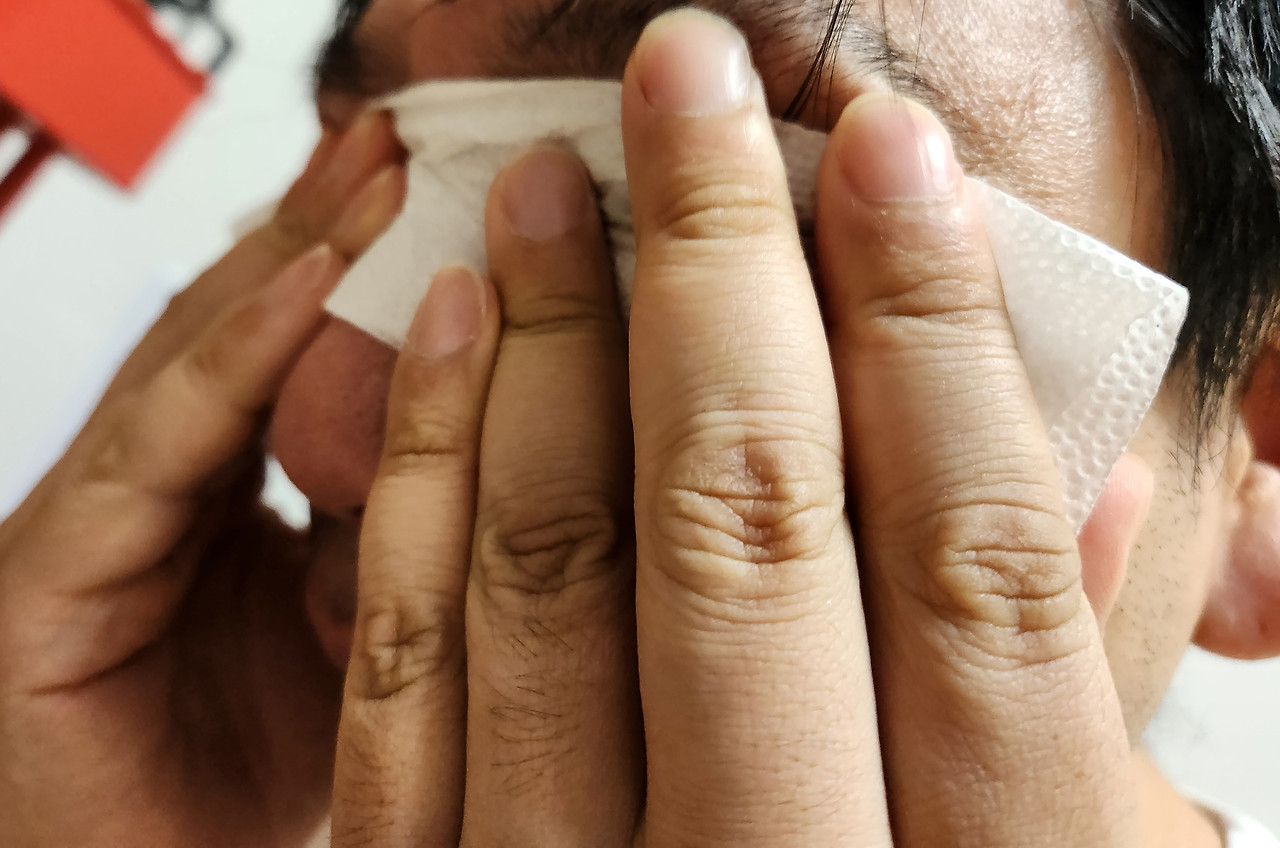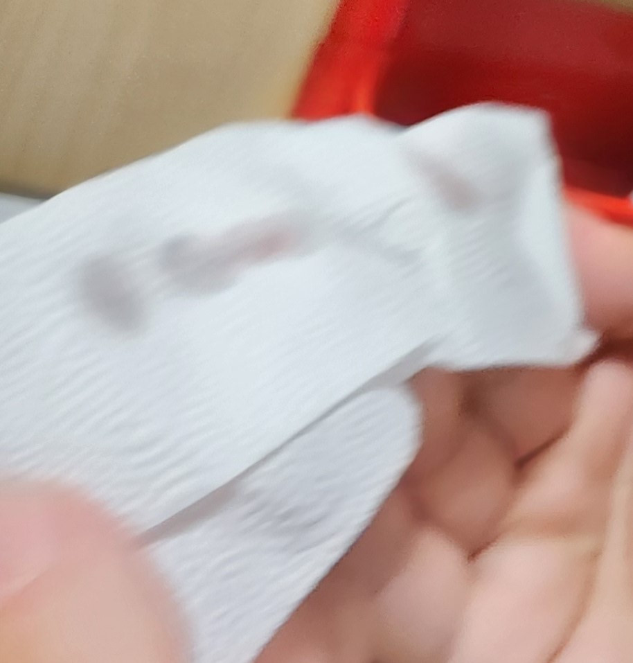 휴지로 눈물 닦다가 자체 모자이크처리 / 콧물이 아니라 눈물입니다.