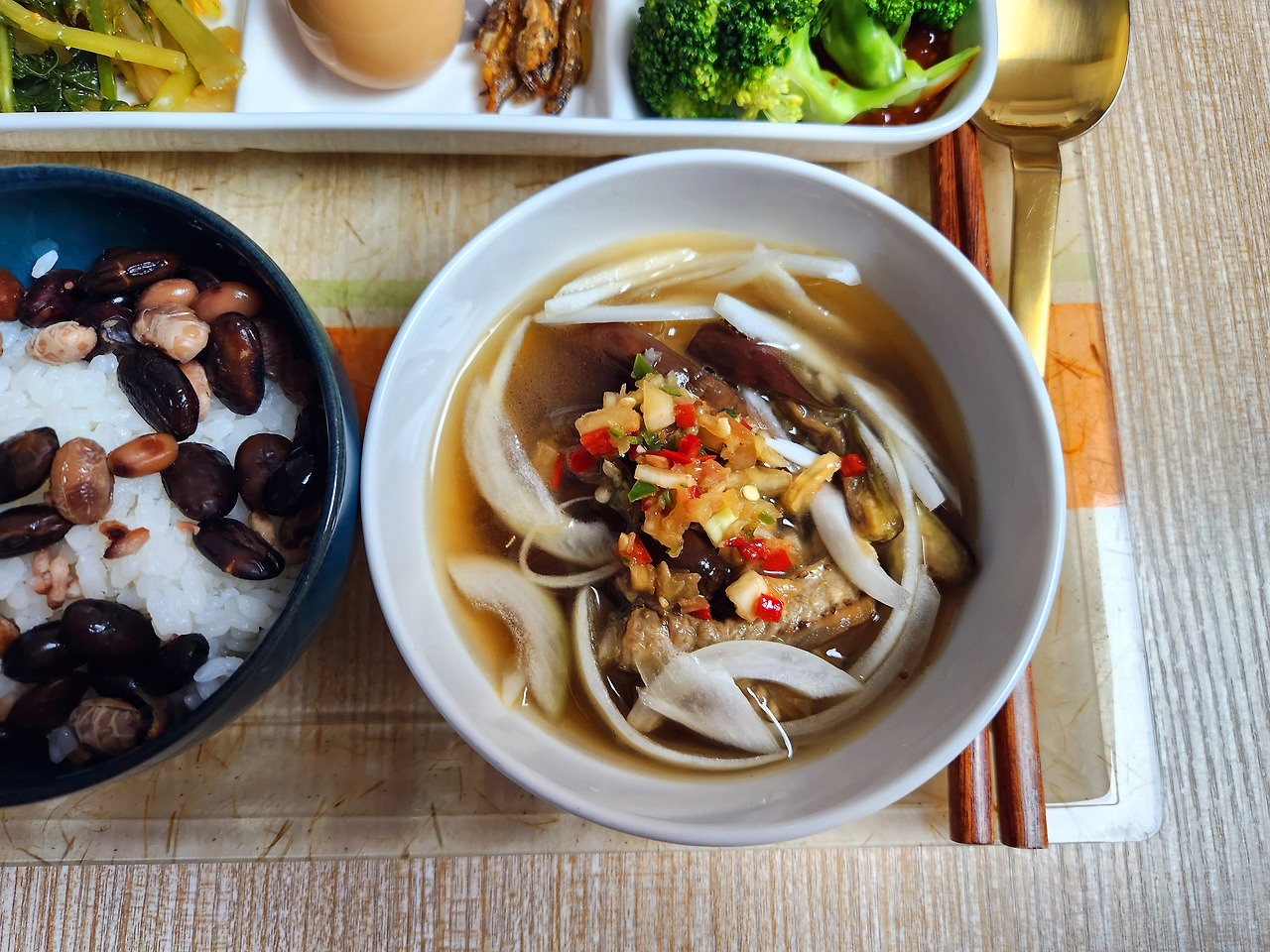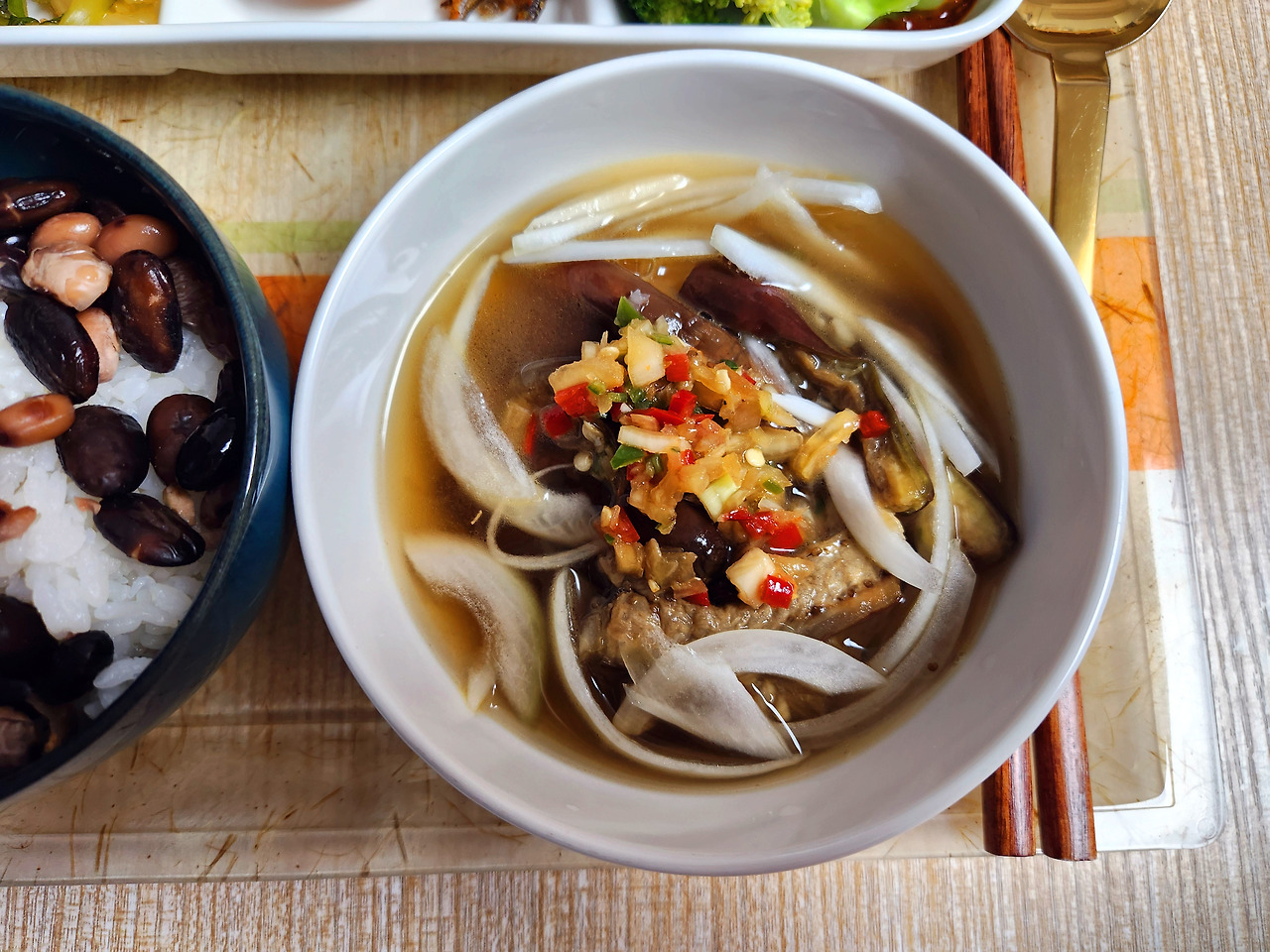 간소하게 차려본 가지냉국 상차림. 남편은 콩밥을 안 좋아해서