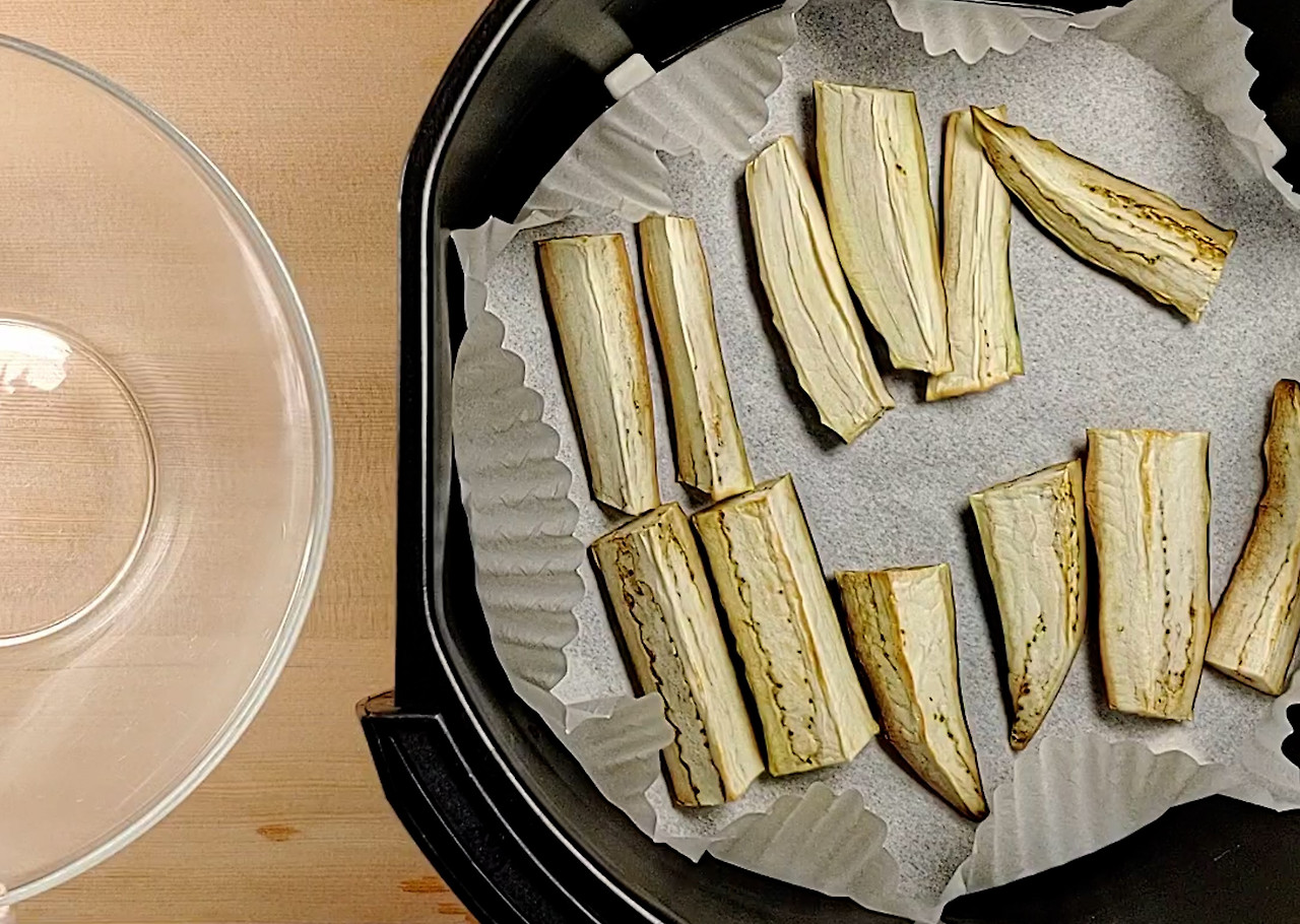 . 가지를 에어프라이어에 구워 쫄깃하게 만든다.