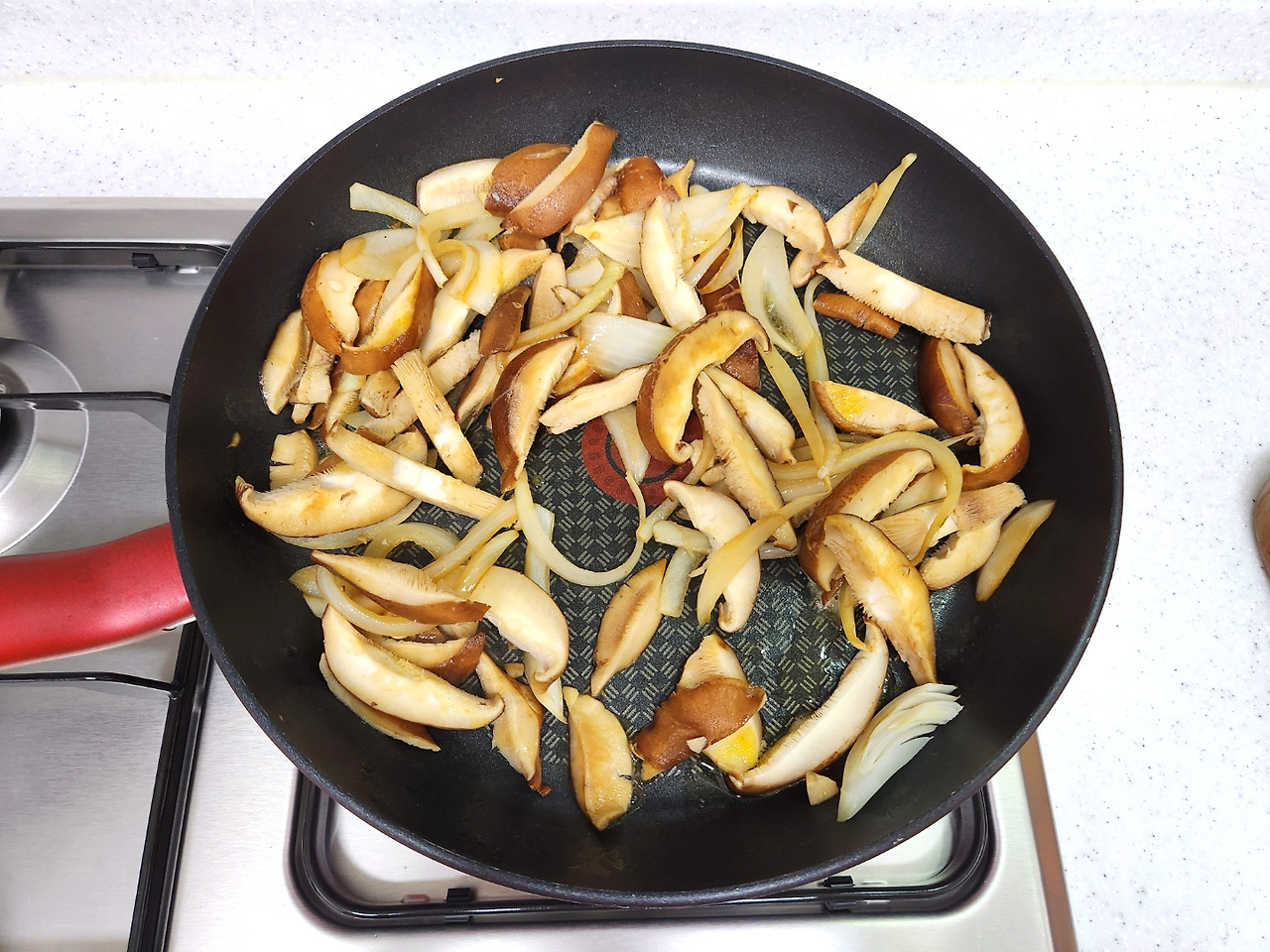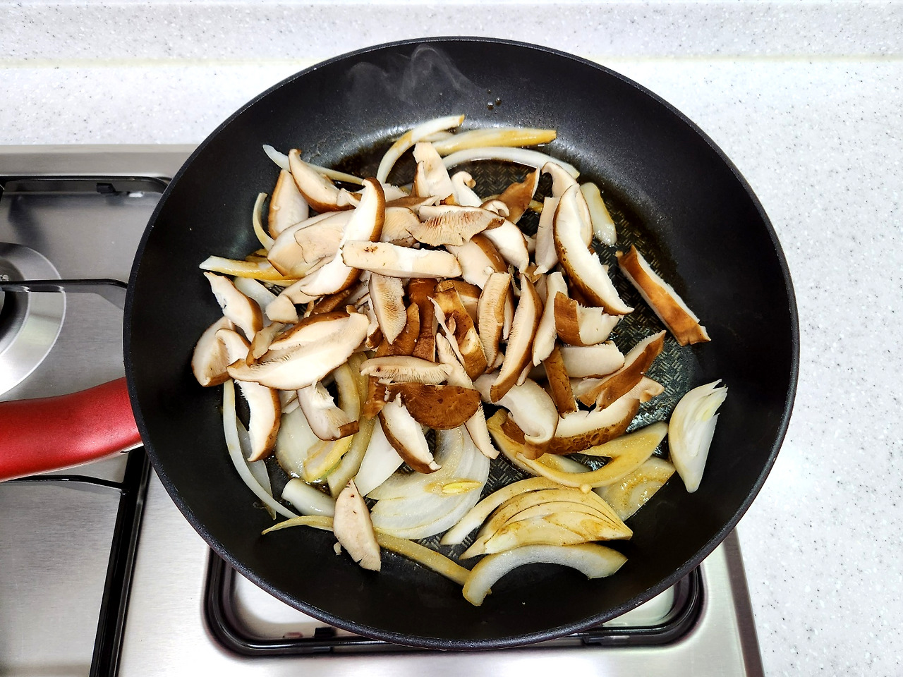 (들기름, 표고버섯 향이 잘 살고 식감도 탱글해져요.)