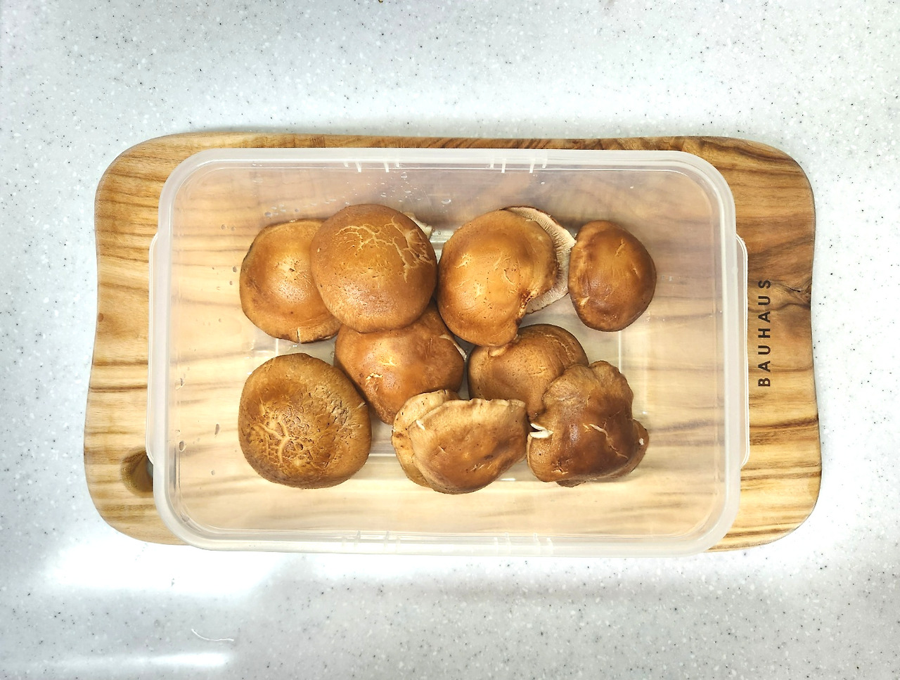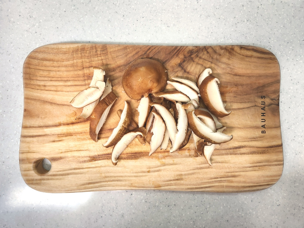 생표고는 흐르는 물에 살짝 헹군다음 0.5cm 두께로 썰어주세요.