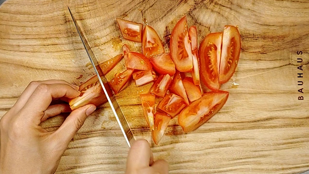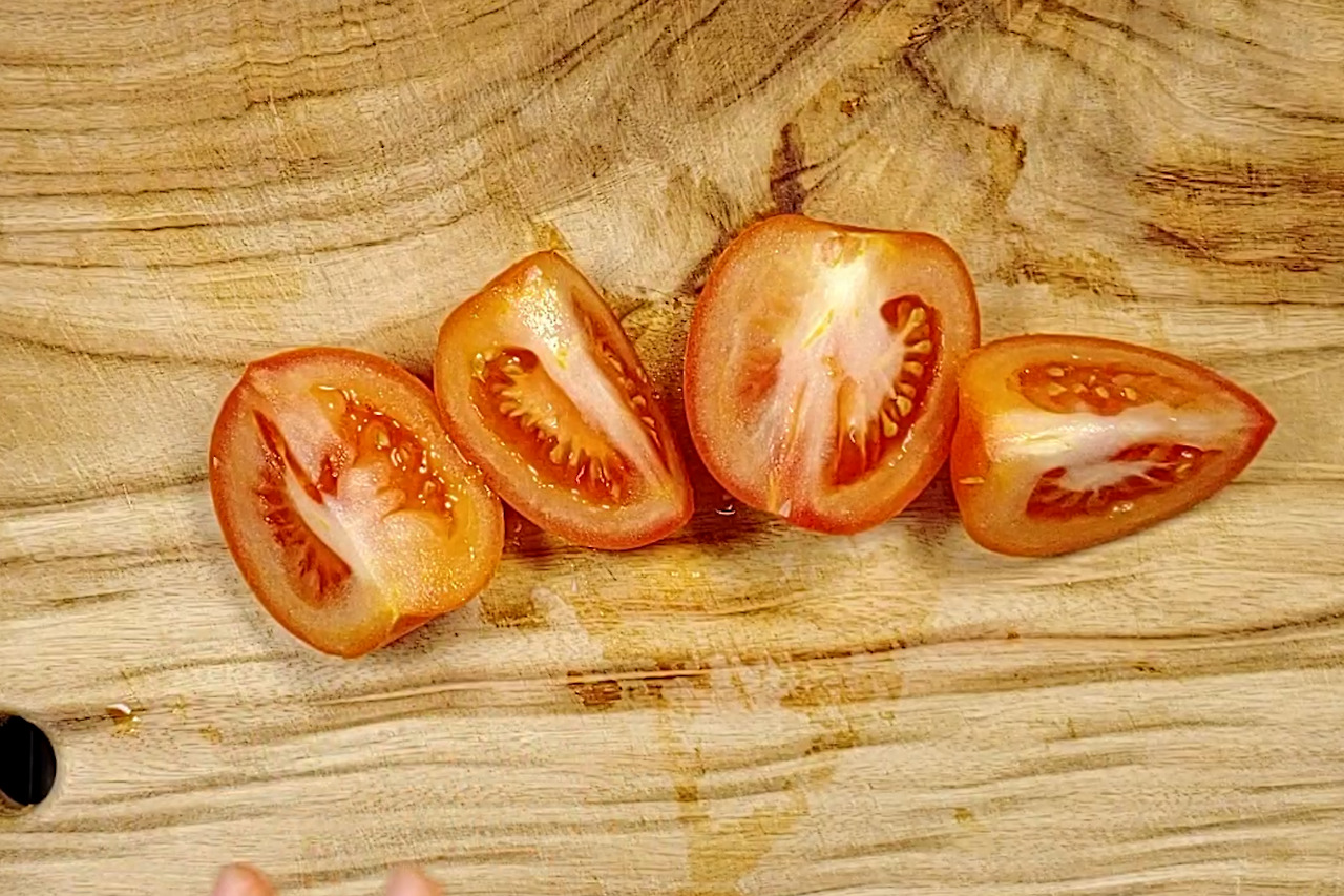 토마토도 잘 익을 수 있게 썰어서 준비합니다. (단단할 수록 작게 잘라주세요.)