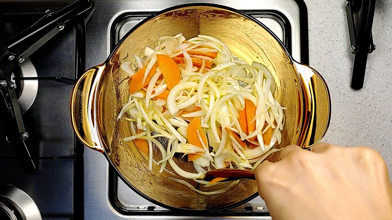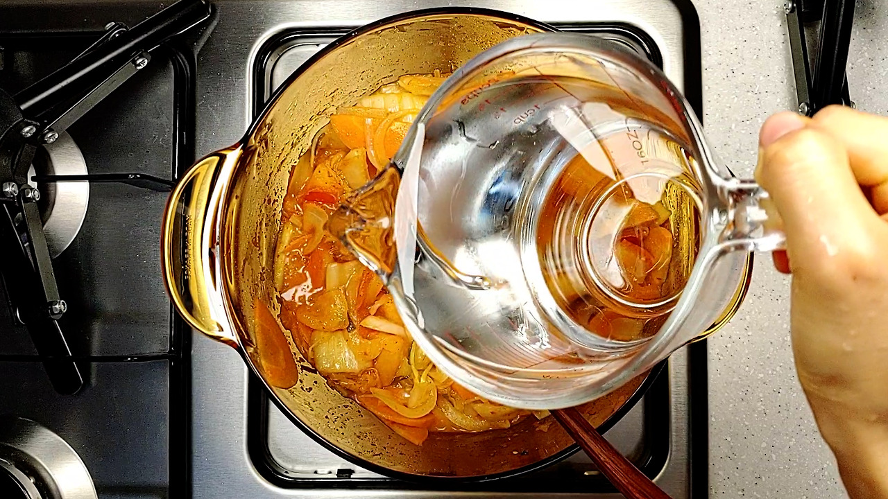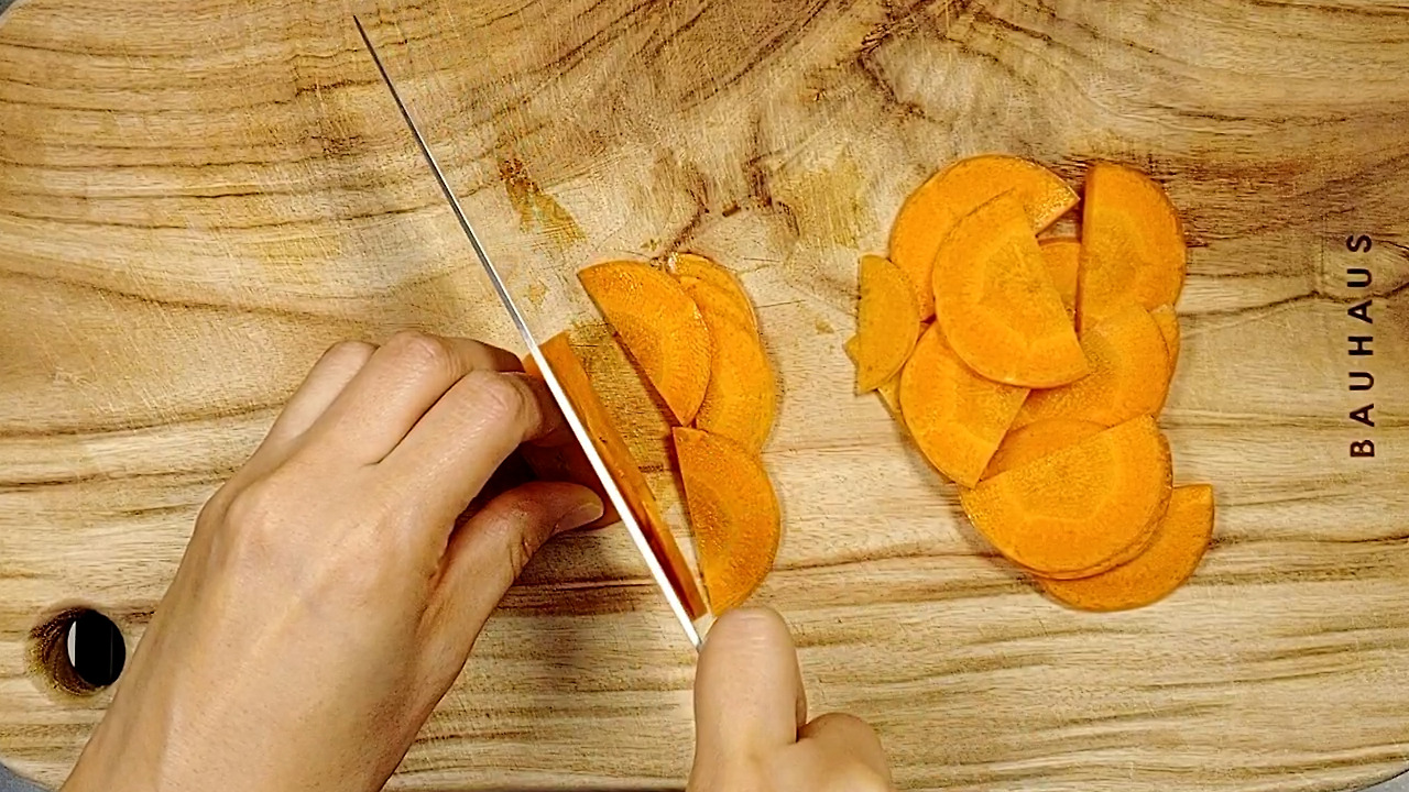 당근과 양파는 단맛이 잘 우러나도록 얇게 썰어주세요.