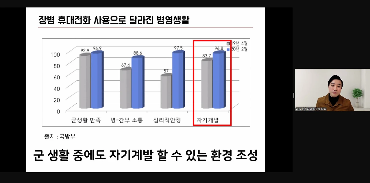 화면 너머로 모인 수많은 장병들과 군 교육 관계자분들의 열정적인 눈빛이 아직도 선명합니다.