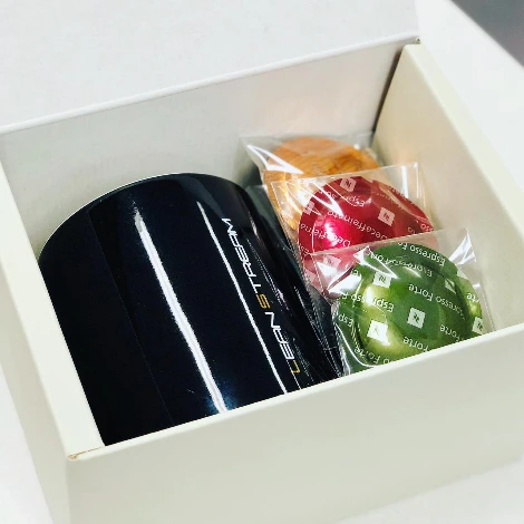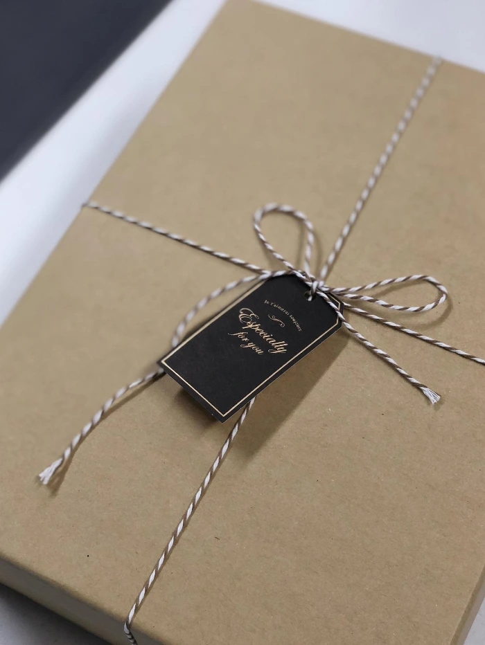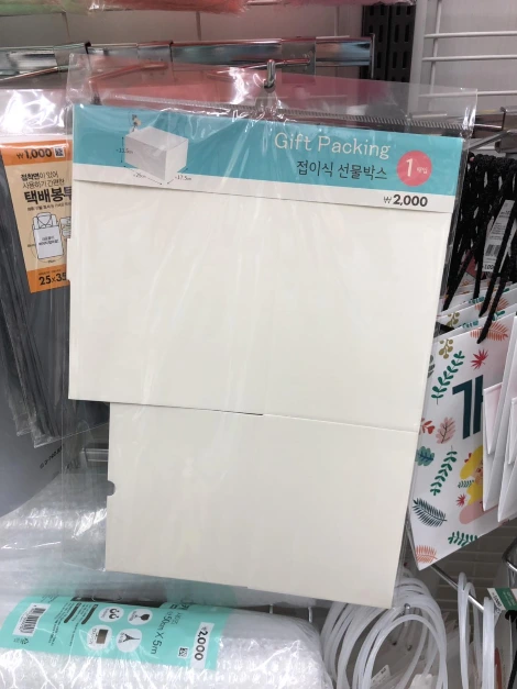 기본적으로 주는 다이어리의 색이 어두운 회색이었기 때문에 검정 상자에 넣으면 세련될 것이라 생각했다. 그래서 인터넷 웹 사이트를 다 뒤졌지만 내가 원하는 사이즈의 상자가 없었고, 있었어도 여러 개를 구입해야 했다. 다이소와 아트박스를 뒤졌지만 검은색 상자는 있을 리 만무했고, 결국 아트박스의 크라프트 무지 상자로 타협했다. 생각보다 아트박스에 다양한 선물 포장 용품들이 있어 상자를 묶는 끈과 스티커도 같이 구입했다. 반면 다이소에서는 접는 종이상자가 사이즈별로 구비되어 있었고, 가격도 저렴했다. (다이소 너는 더럽..♡) 그래서 상자를 구입해 린스트림 컵과 커피 캡슐을 포장했다.