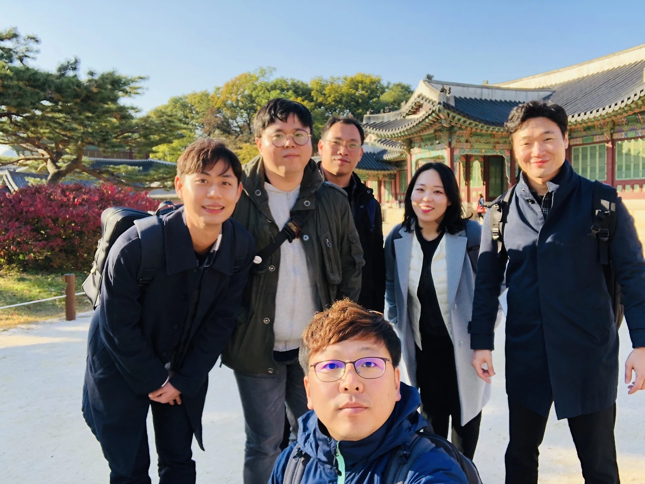 인정전 앞에서 찍은 단체셀카 (내가 제일 잘나왔다~ 야호)