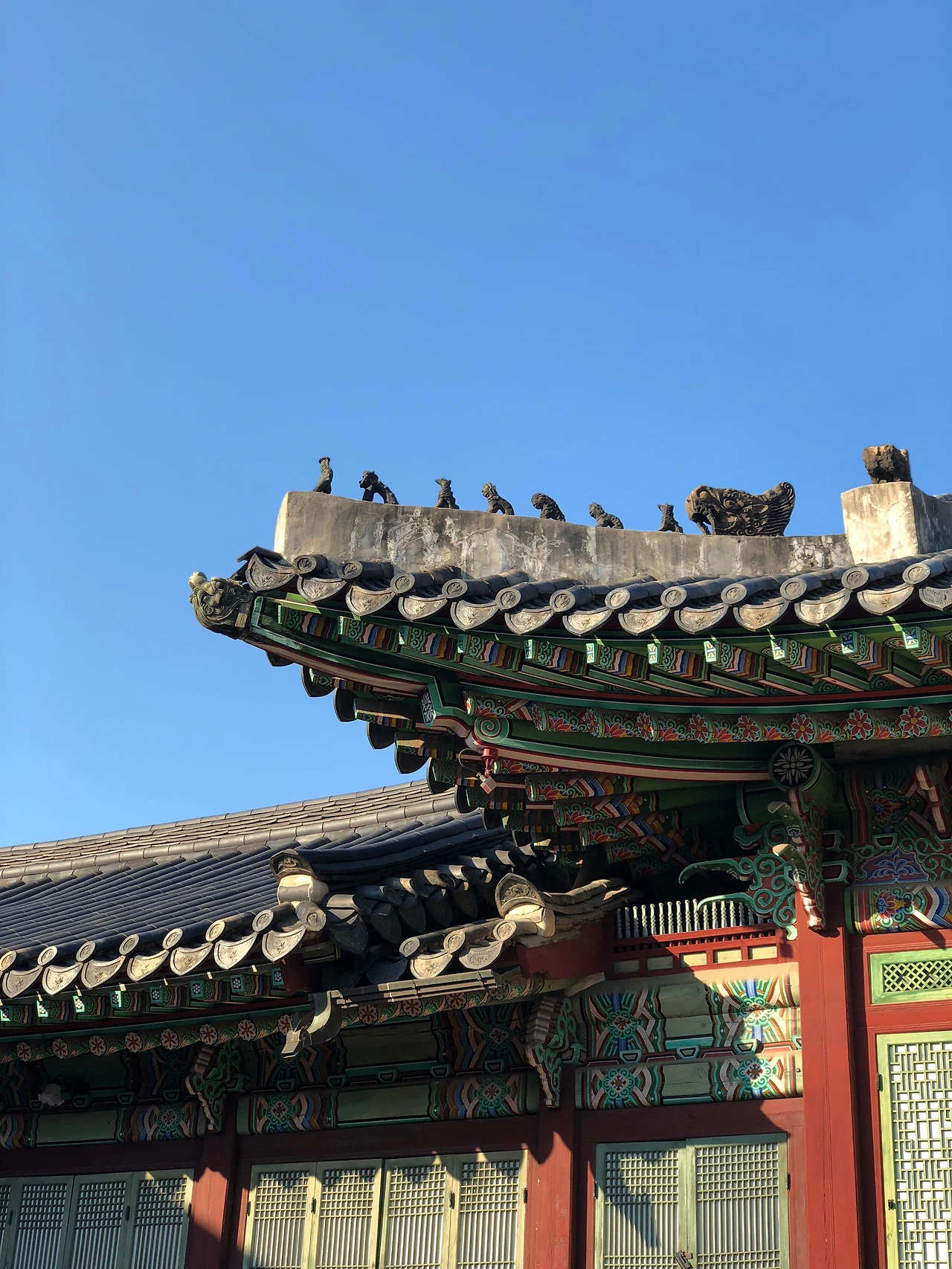 (왼) 울긋불긋한 나무와 어우러지는 창덕궁 / (오) 구름 한 점 없는 창덕궁 인정문의 모습