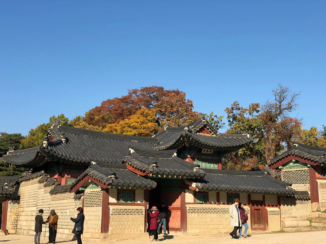 한옥의 정취를 느끼면서 자신만의 시간을 가진 뒤 근처에 있는 창덕궁을 방문했다. 창덕궁 돈화문을 들어가자마자 보이는 단풍 나무들은 가을을 충분히 느끼게 해주었다. 중국인 관광객들과 출사를 나온 사람들, 친구와 함께 온 사람들. 굉장히 많은 사람들이 가을을 만끽하며 창덕궁에서 시간을 보내고 있었다. 그 중에는 알록달록 화려한 한복을 입은 사람들이 삼삼오오 모여서 사진을 찍고 있었는데 역시 고궁에는 한복이 잘 어울린다는 생각을 했다. 추위에도 불구하고 한복을 입고 인생샷을 남기는 사람들을 보며 '우리도 입을 걸 그랬나'라는 생각이 들었다.