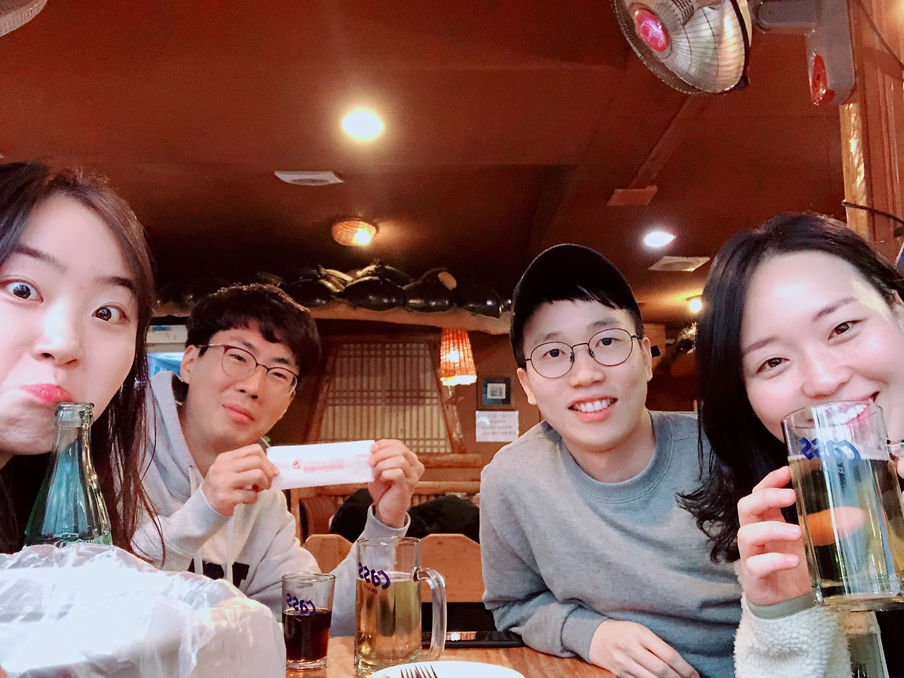 단 한 가지 아쉬운 점은 시간 맞추기가 너무 어렵다는 점이다. 각자 팀이 다르고 하는 업무가 다르다 보니 어쩔 수 없이 한 달에 한 번 주말에 모이고 있지만 모든 회원이 다 참여한 적이 없었다. (아쉽 T_T)