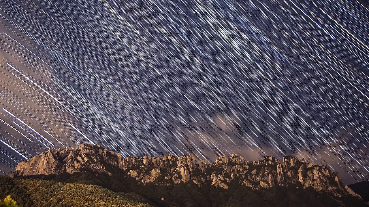 지구의 자전으로 인해 발생하는 별의 움직임 흔적을 한 장의 사진에 담으면 멋진 별 궤적 사진이 완성된다.