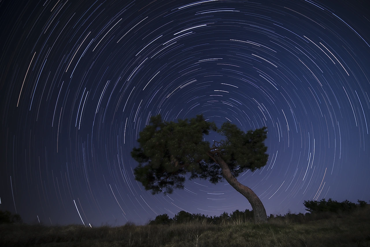 우리는 북반구에 살고 있으므로 북쪽의 하늘을 배경으로 별 궤적 사진을 찍으면 북극성을 중심으로 주변의 별들이 동심원을 그리며 멋지게 움직이는 흔적을 담을 수 있다.