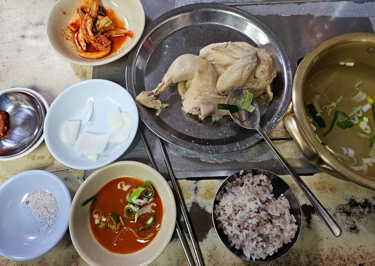 따뜻한 닭곰탕 국물을 들이키니 '하아'하는 소리가 절로 나온다.