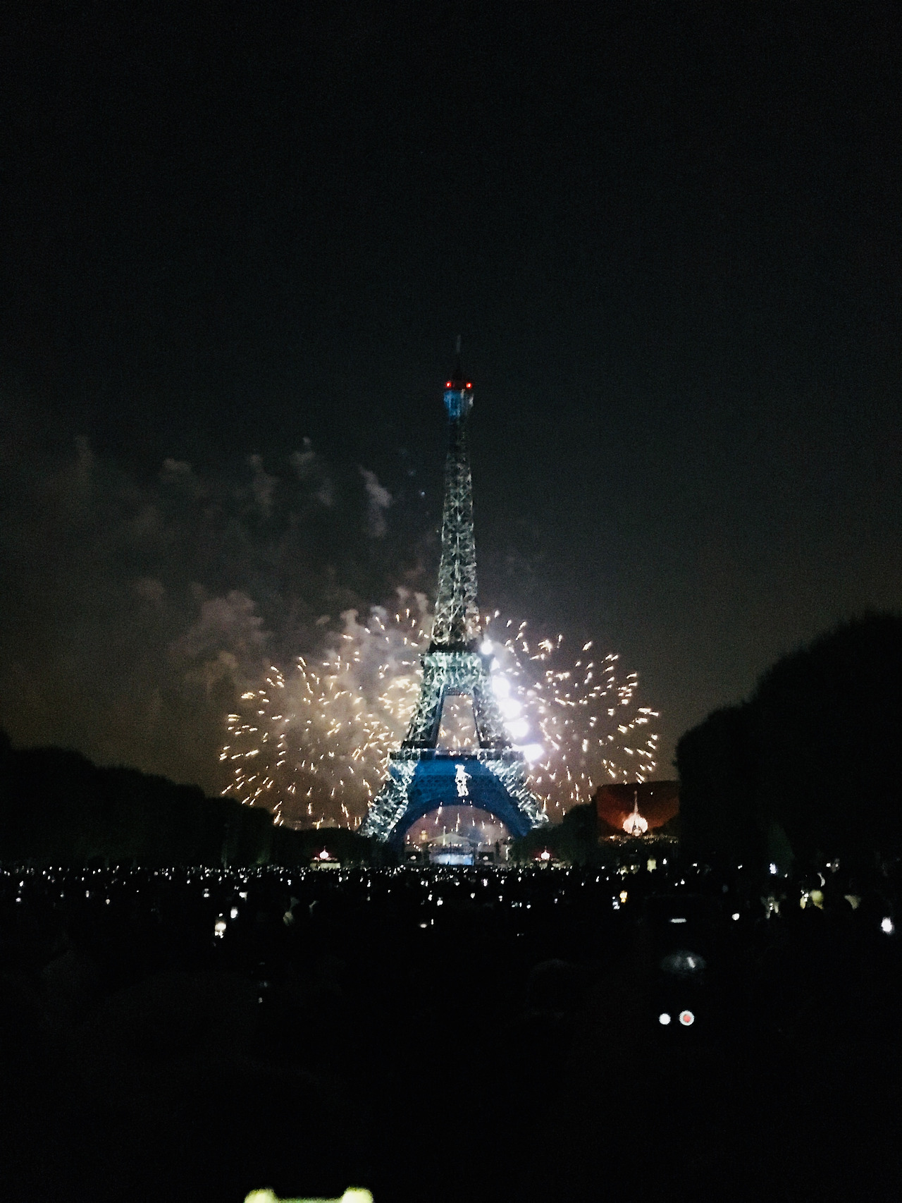오랜만에 먹는 그 맛에 행복감을 느끼며 향한 에펠탑. 콘서트와 불꽃놀이를 보려는 사람들에 공원은 빽빽하게 인파가 들어차 있었지만 이 날 본 불꽃놀이 공연은 매우 환상적이었다. 새해맞이 때도 별로 안 터뜨리던 불꽃을 이 날 다 몰아서 터뜨리는구나 싶었다