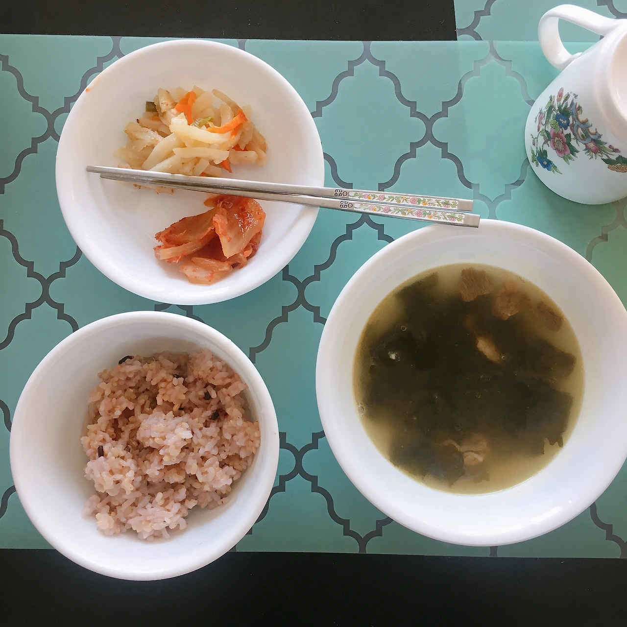 미칠듯한 일정을 소화하던 나날, 그나마 아침에 조금 늦게 일어날 수 있는 날이었다. 그렇다고 해도 9시쯤에는 기상했지만.... 잘 떠지지 않는 눈을 비비며 일어나니 E언니가 아침밥 챙겨 먹어라며 국과 반찬을 만들어 놨다. 예전 내 생일 때 언니가 미역국을 끓여준 적이 있었는데 “우와 진짜 맛있어. 우리 엄마가 한 거보다 더 맛있네”하고 말한 적이 있었다. (진심으로) 그걸 기억했는지 언니는 미역국을 만들어줬다