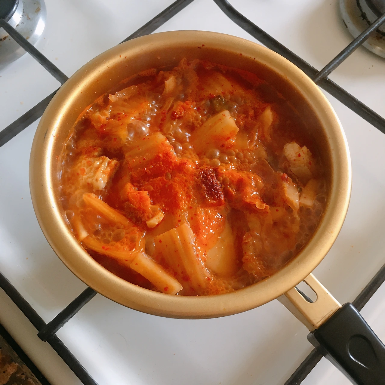 남은 돼지고기는 김치와함께 김치찌게로 만들어 먹었다