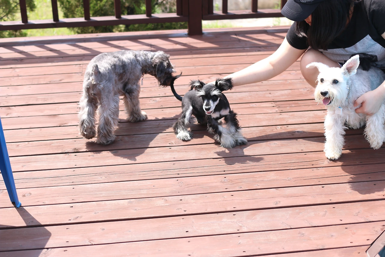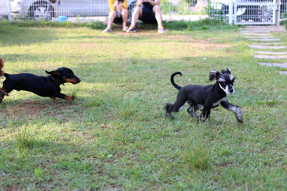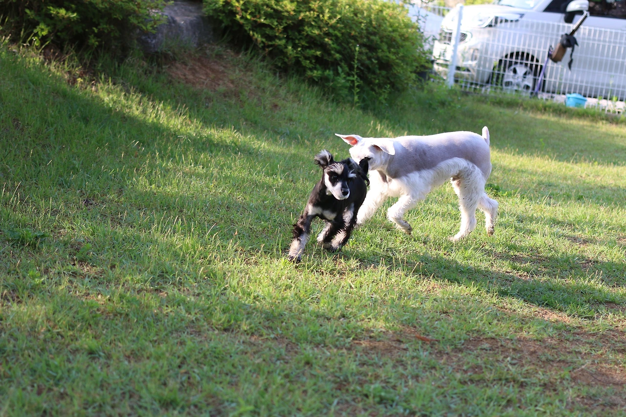 이미 차에서 안면을 트고, 한 유모차를 셰어 했던 슈나우저 형, 누나들을 익숙하게 지나치던 쭈니는 놀자 달려드는 안면부지(顔面不知)의 푸들과 닥스훈트에 흠칫 놀랐다.