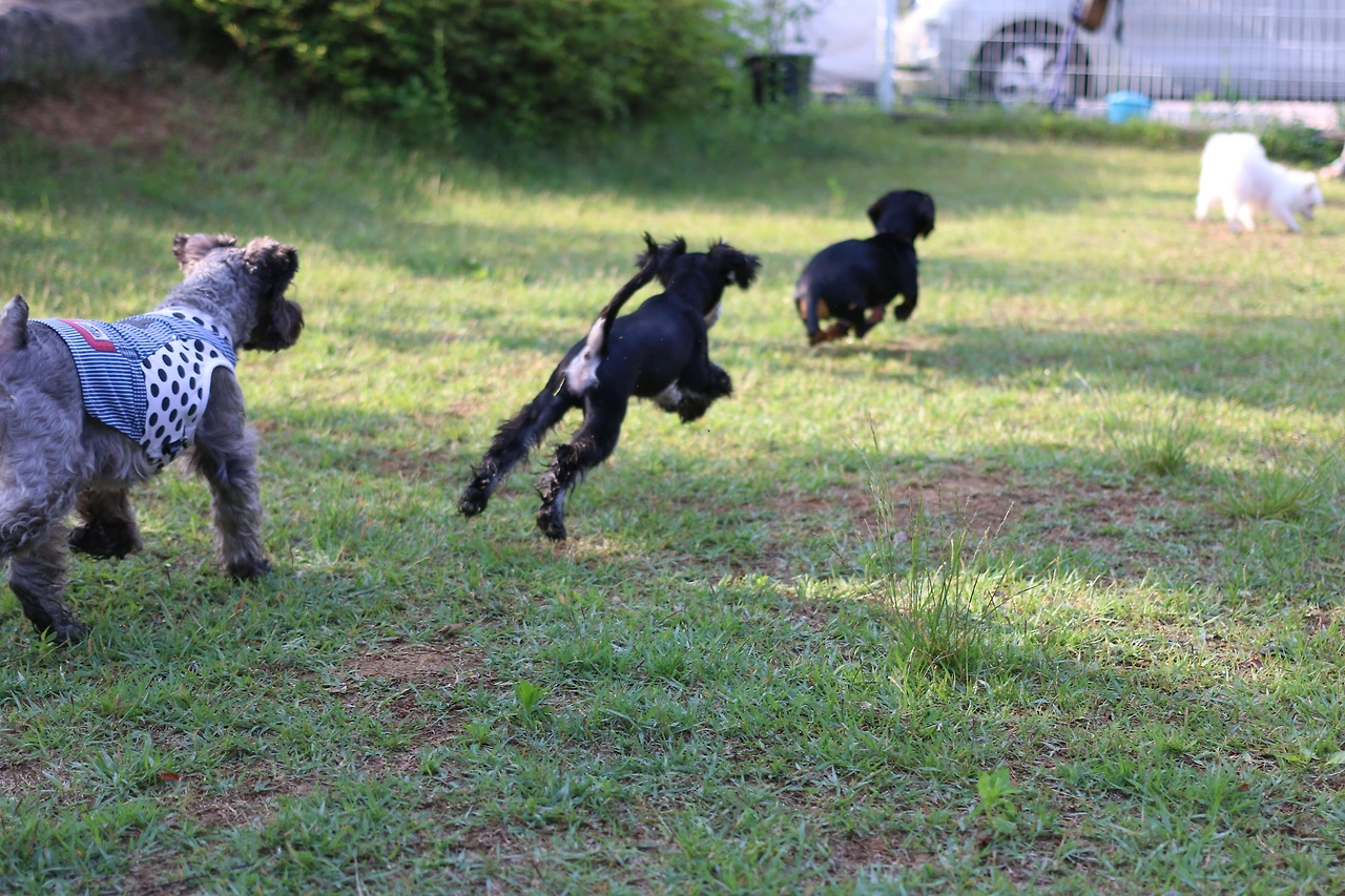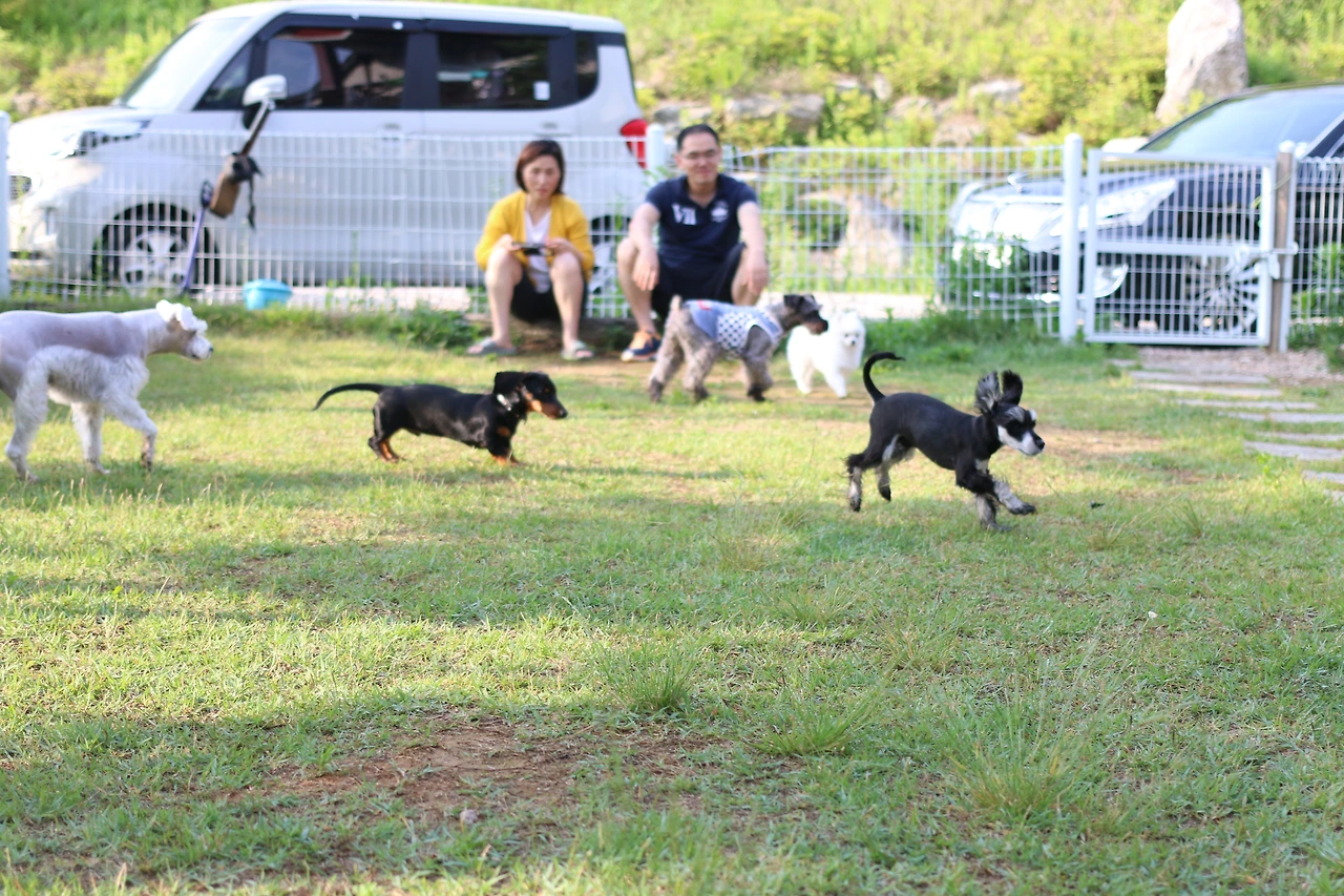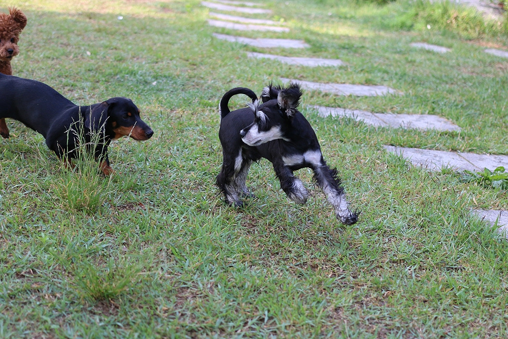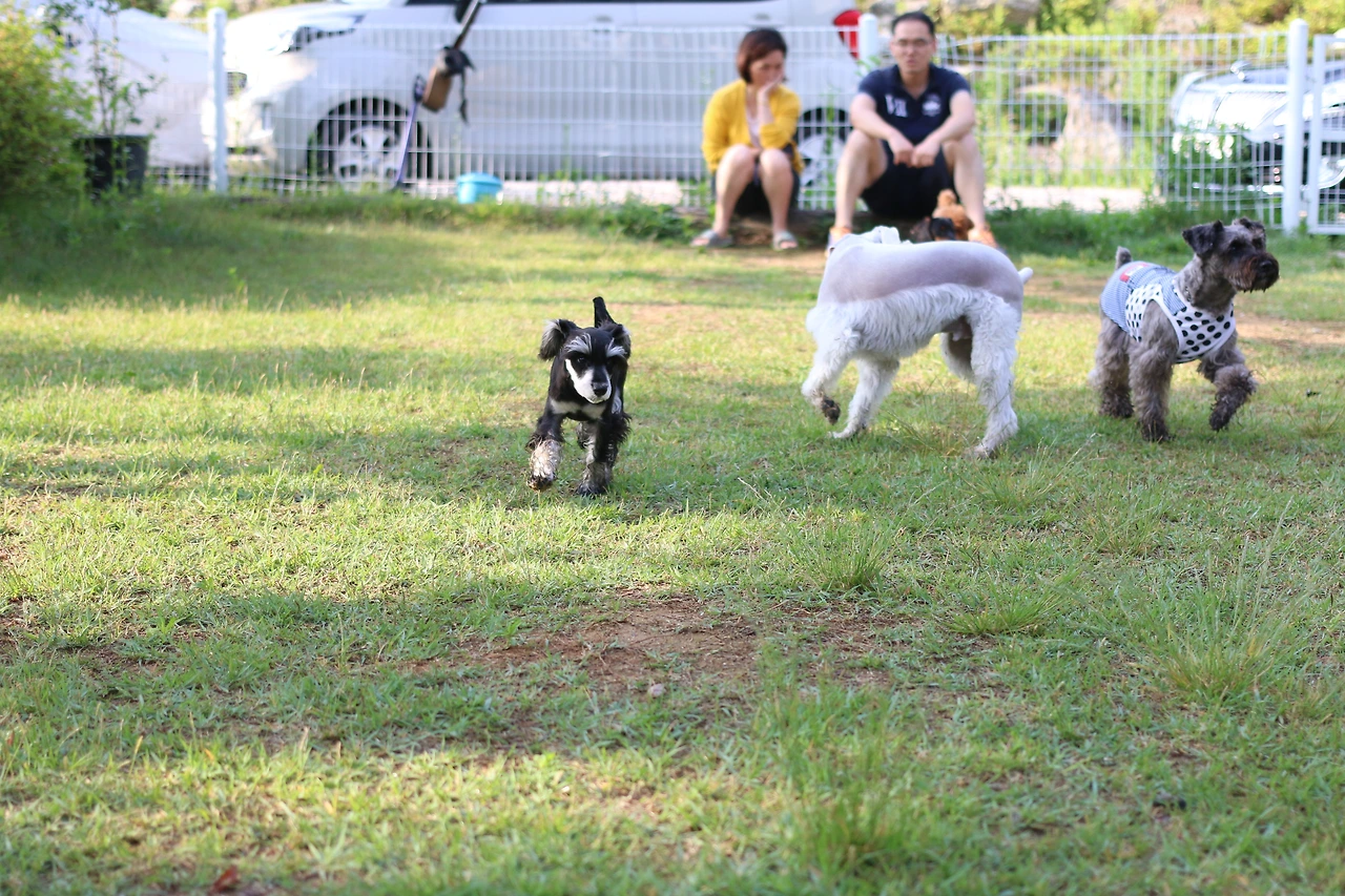 이미 차에서 안면을 트고, 한 유모차를 셰어 했던 슈나우저 형, 누나들을 익숙하게 지나치던 쭈니는 놀자 달려드는 안면부지(顔面不知)의 푸들과 닥스훈트에 흠칫 놀랐다.