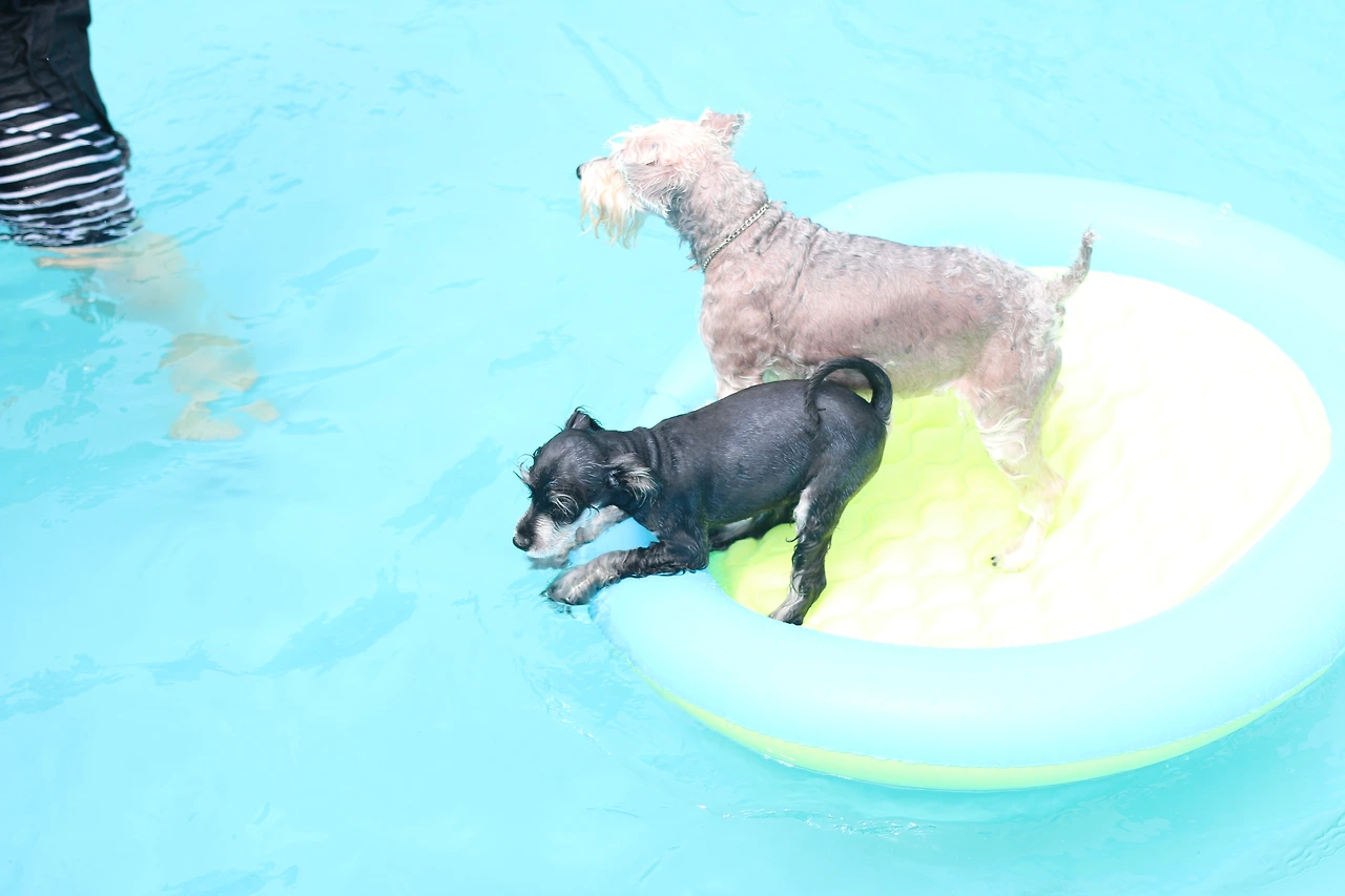 하여 펜션에서 가득 물을 담아 준 수영장에 털복숭이들과 함께 들어가 열을 식히기로 했다.
