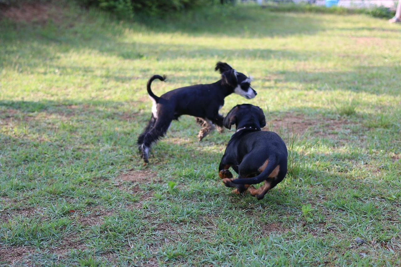 다리 길이가 자신의 반밖에 안될 만큼 짧은 닥스훈트에게도 꼬리가 곧 잡힐 만큼 따라 잡힌 쭈니는 필사적으로 도망쳤다.