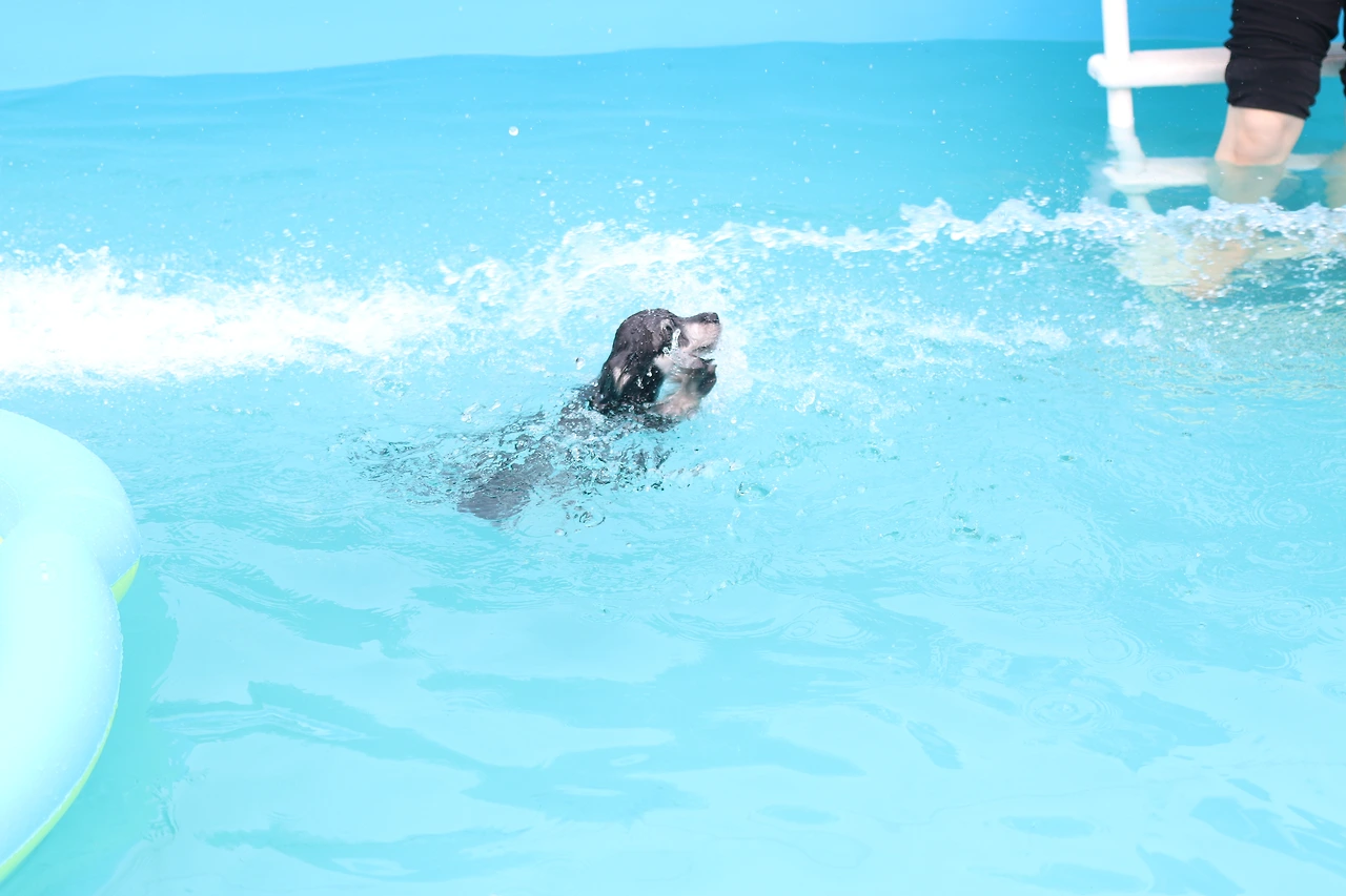 쭈니는 세상 그렇게 우렁찰 수 없을 만큼 앞발을 첨벙이면서 수영을 했다.