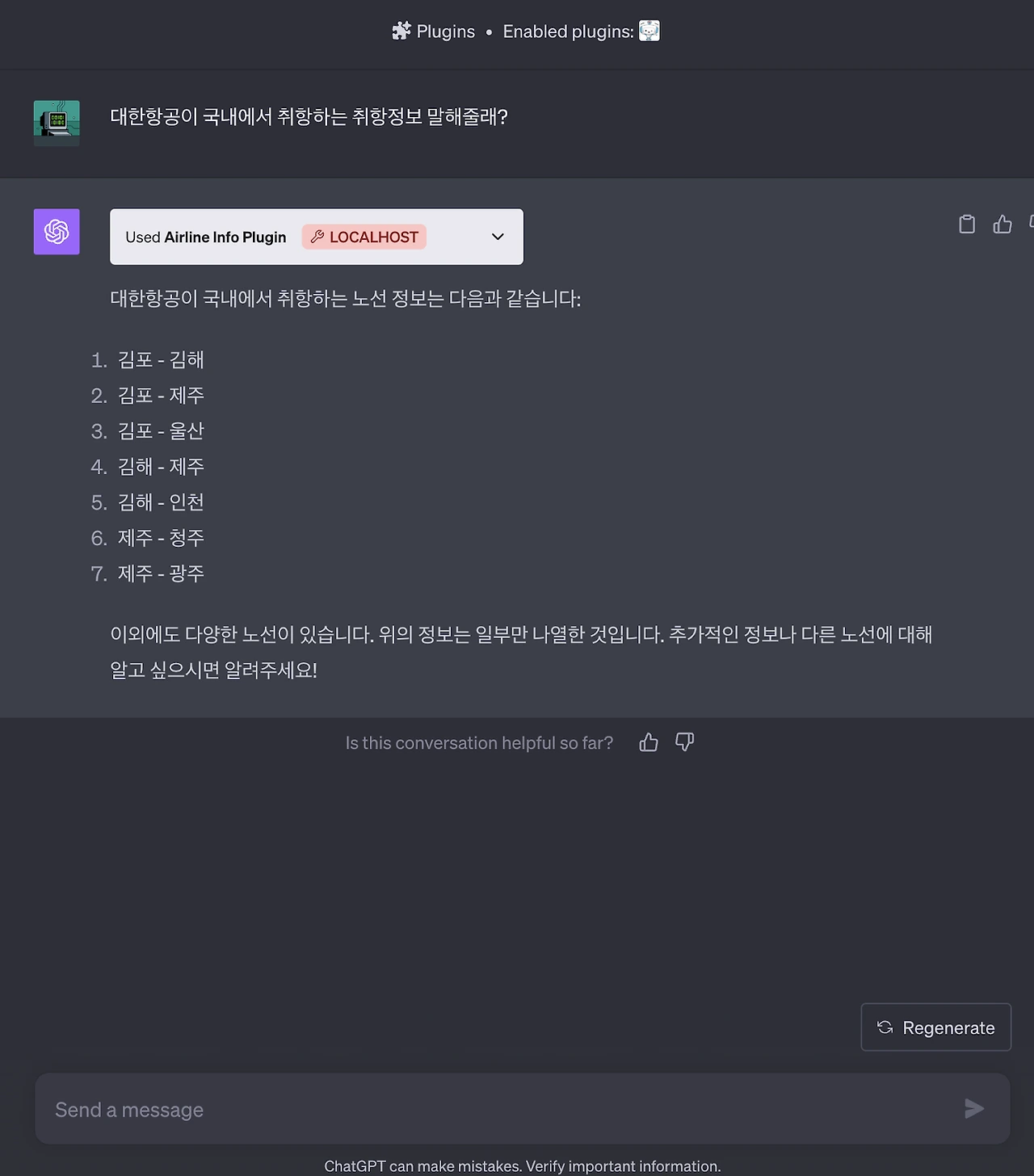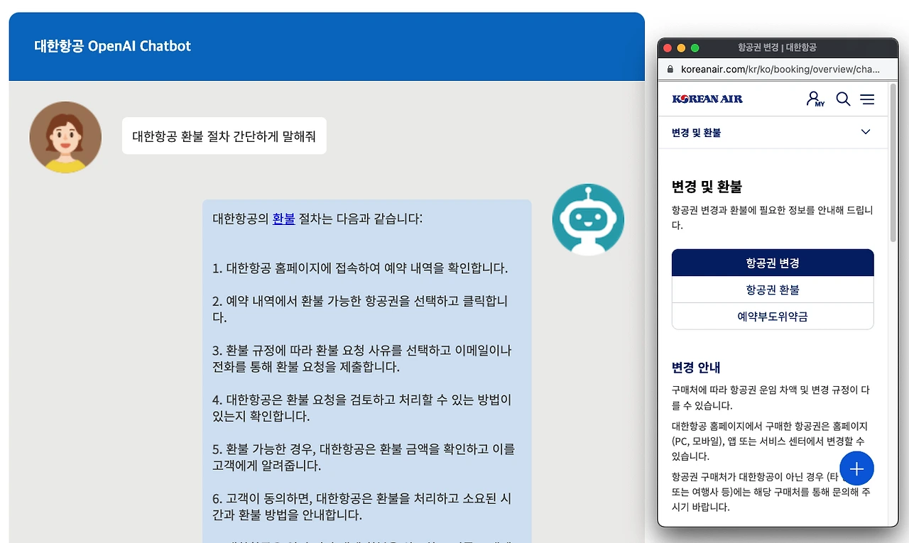 plug-in 방식은 내부시스템에 구축되는 방식이 아니라, ChatGPT와 같은 주체가 되는 시스템에 확장 개념으로 제공이 되는 방식이다. 따라서 대한항공과 1A사이에 주고 받는 주요 API에 대한 내용을 플러그인 주체 (ex. ChatGPT)에게도 허용을 해 주어야 하는데 보통 air-offers와 같은 주요 API는 사내에서 CDN 시스템을 활용한 보안 및 내부 서버에만 허용되는 whitelist 처리를 하는데 이러한 중요한 시스템을 외부 시스템에 학습시키고 사용을 허가해주는 것은 어렵다