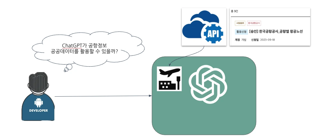 이하 내용은 GEN AI를 사용한 데이터 활용 방안에 대한 연구 및 프로토타입이다. LLM은 gpt-3.5-turbo를 사용하였다. 내부데이터를 통한 테스트는 외부 유출 위험이 있으므로 프로토타입 구축은 외부 시스템에서 사용중인 공공 데이터와 오픈소스 API를 활용하는 것으로 테스트를 진행하였다. 이후 테스트한 데이터를 바탕으로 향후 사내 활용 방안에 대한 아이디어를 이야기 할 것이다.