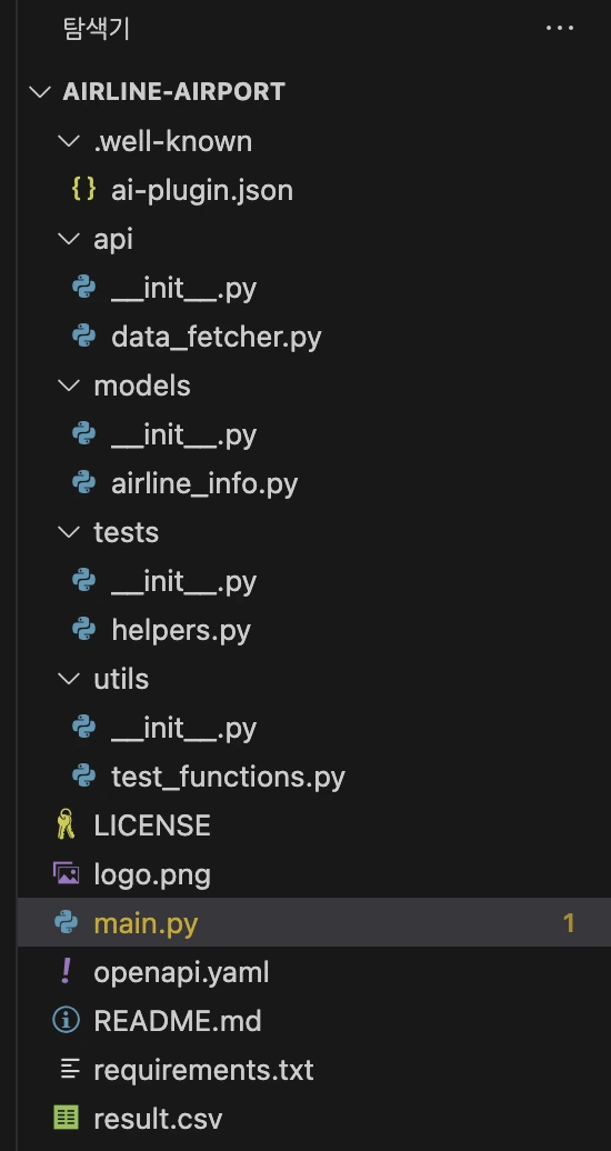 + 플러그인에서 Response로 사용된 실제 50개의 항공사별 국내 취항 정보 (API KEY 필요)