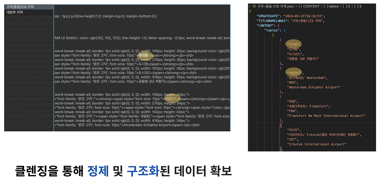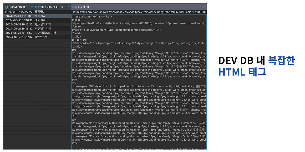 초기 데이터는 HTML로 이루어진 Style과 다양한 태그들로 인하여 매우 용량이 큰 데이터였다. 이는 RAG 과정에서 Token의 낭비로 인한 비용 문제 및 추론에 필요 없는 데이터들이 섞여 들어가기 때문에 반드시 제거해 줄 필요가 있었다.