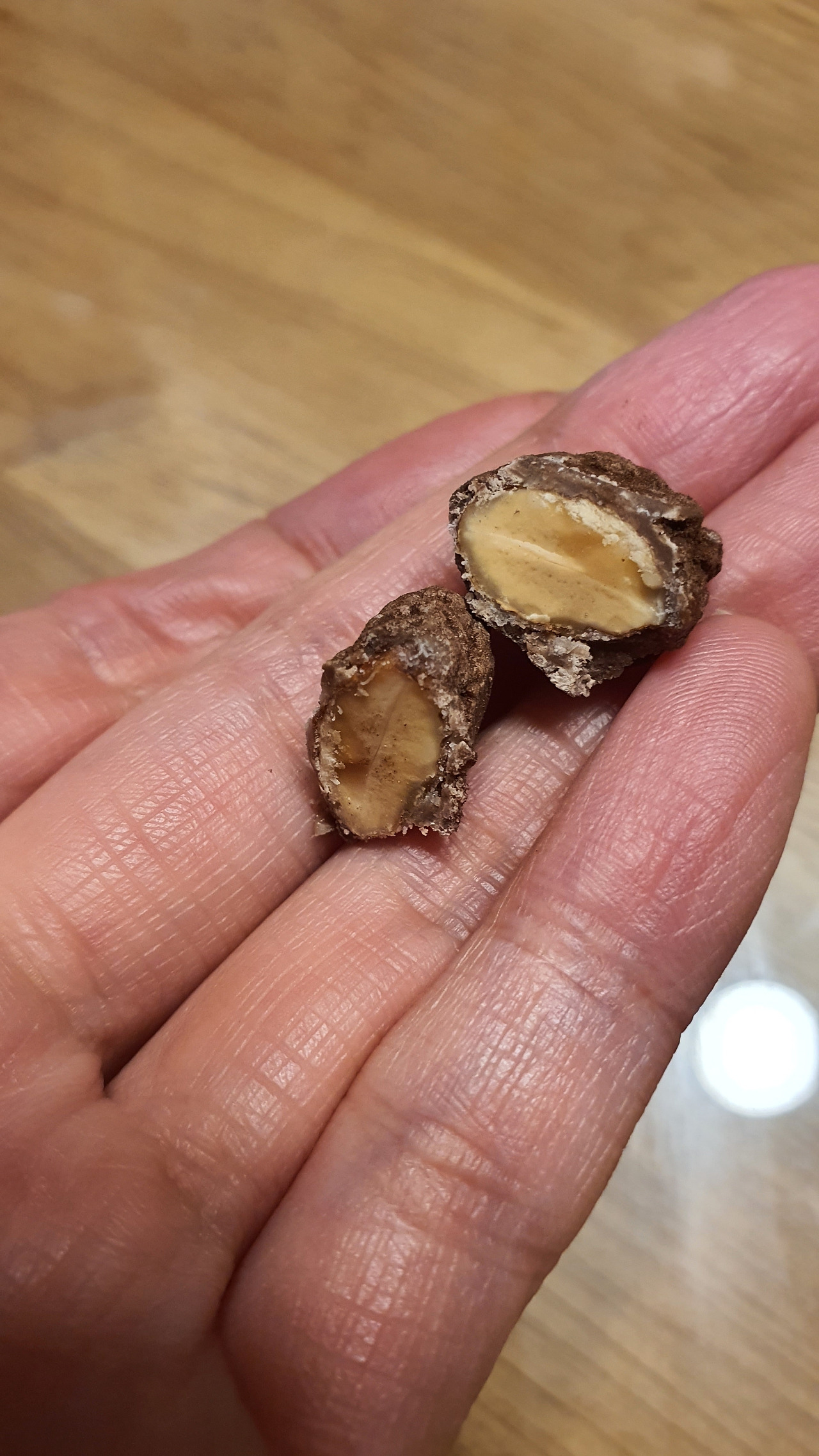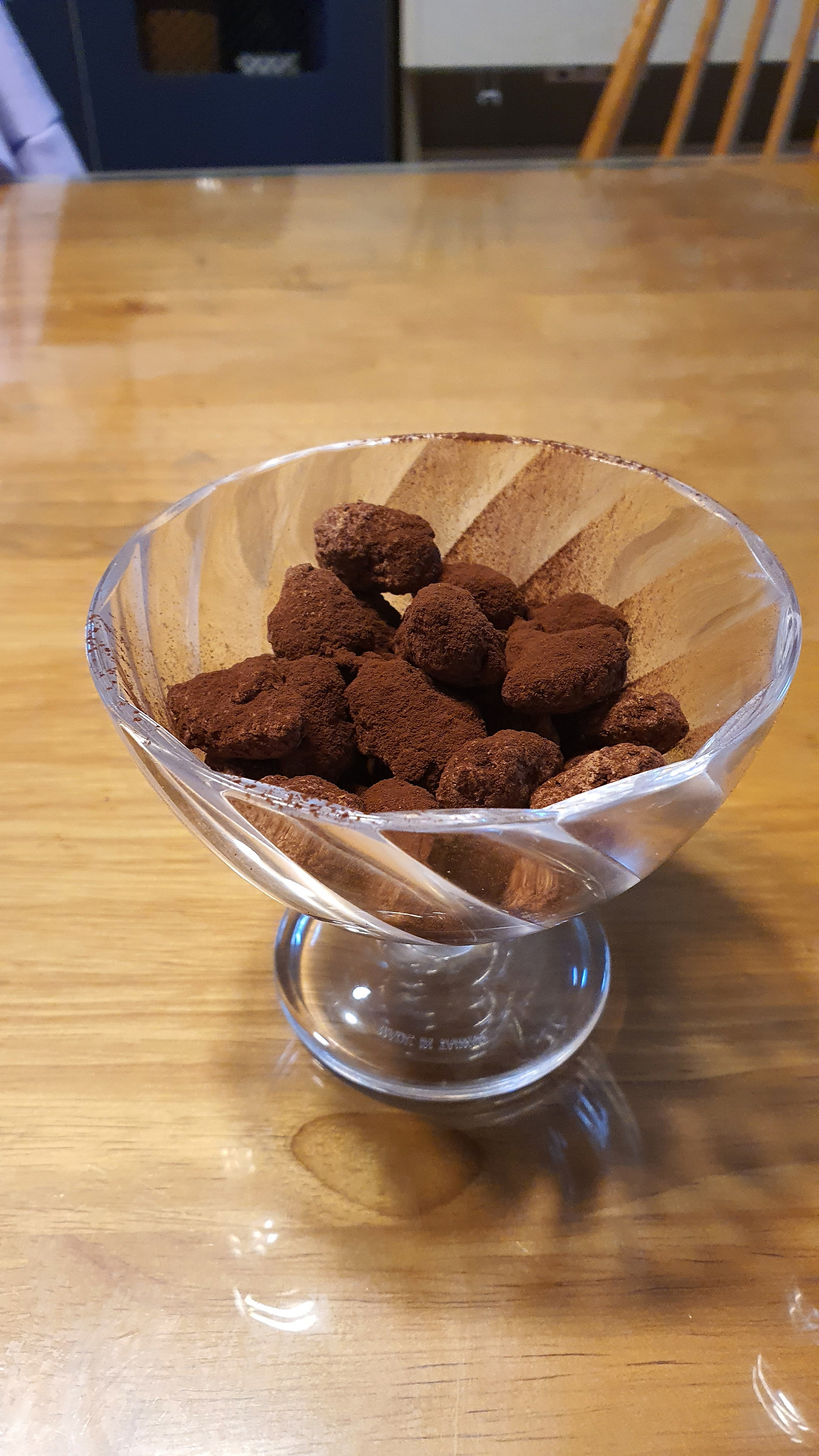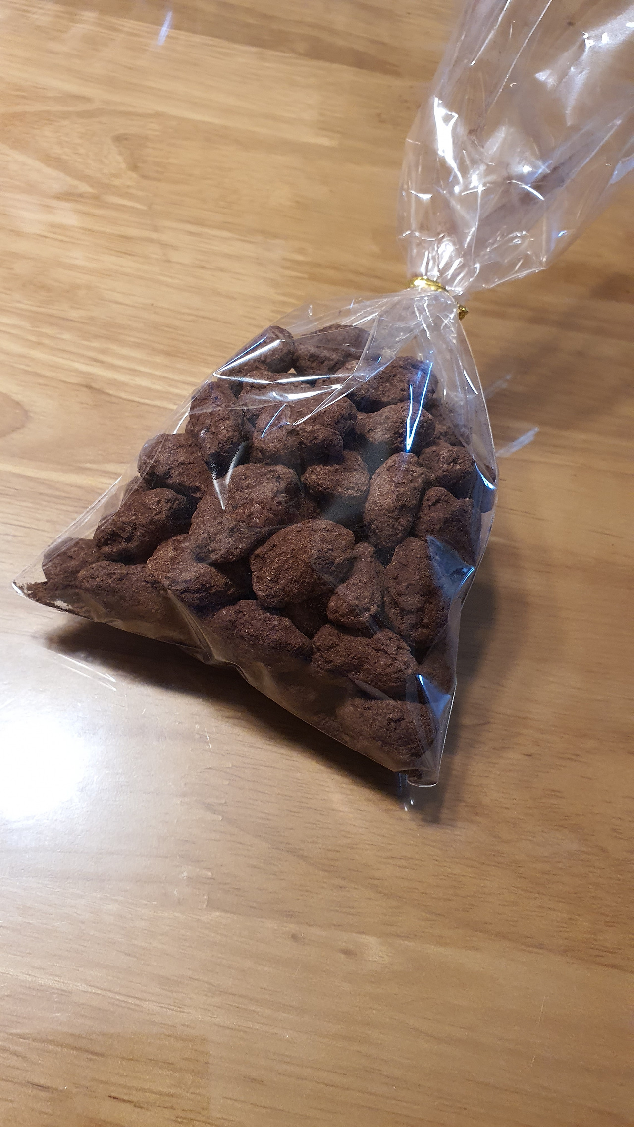 완성된 아망드 쇼콜라는 내가 너무 좋아하는 모 제과의 아몬드 초콜릿과 비슷하고, 생협의 못난이 초코볼과는 똑같았다. 한번 입에 넣으면 손을 계속 뻗게 하는 맛. 친정식구들에게 보내주니 한 자리에 앉아서 다 먹었다고 했다.