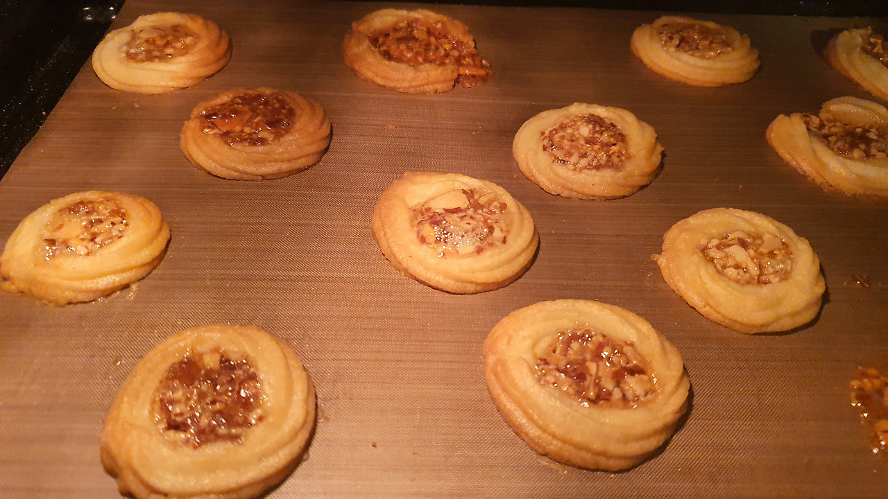 로미아스 쿠키는 쿠키 안에 들어가는 것을 만드는 것이 복잡한 쿠키였다. 슬라이스 아몬드를 시럽에 넣어 끓인 뒤 식히고, 식은 슬라이스 아몬드를 동그랗게 만들어서 짤 주머니로 짜 놓은 쿠키 안에 넣고 오븐에 구워야 하는 것이었다.