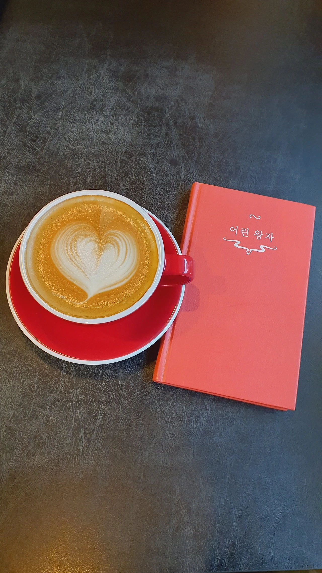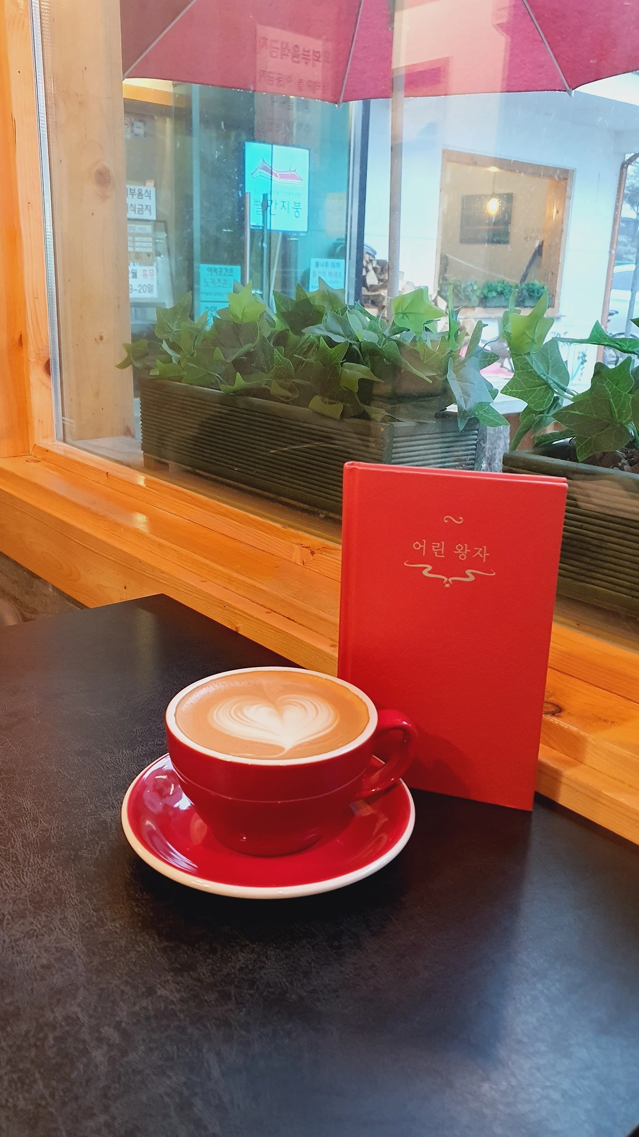 바리스타분이 책 커버의 색을 알기라도 한 걸까? 라테 잔이 책 커버와 같은 빨강 계열이다. (개인적으로 잔의 빨강이 더 마음에 든다.)
