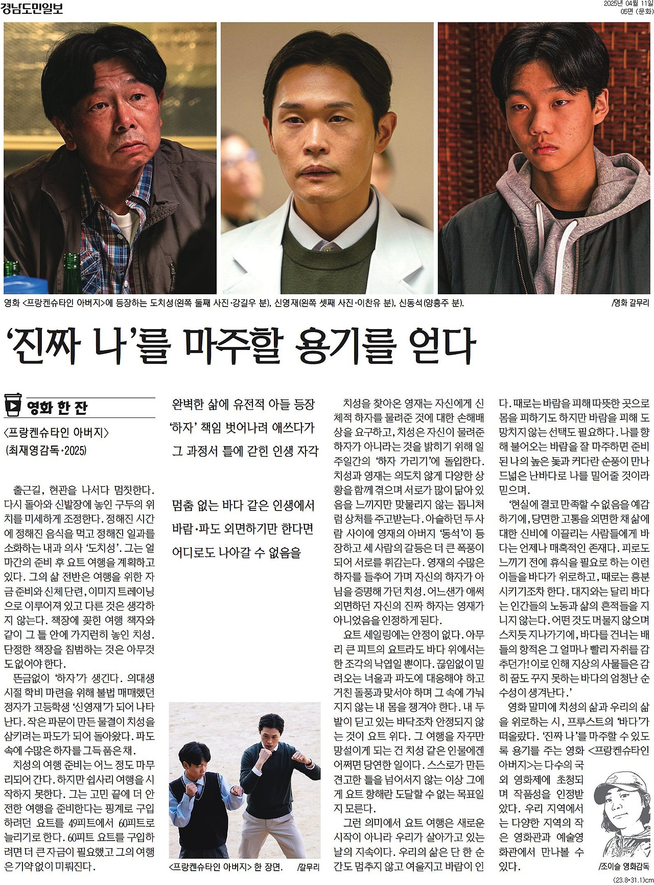 영화의 말미 즈음 치성의 삶과 우리의 삶을 위로하는 오래된 시, 프루스트의 '바다'가 떠올랐다. '진짜 나'를 마주할 수 있도록 용기를 주는 영화 <프랑켄슈타인 아버지>는 다수의 해외 영화제에 초청되며 작품성을 인정받았다. 이 영화는 4월 현재 다양한 지역의 작은 영화관과 예술영화관에서 만나볼 수 있다.