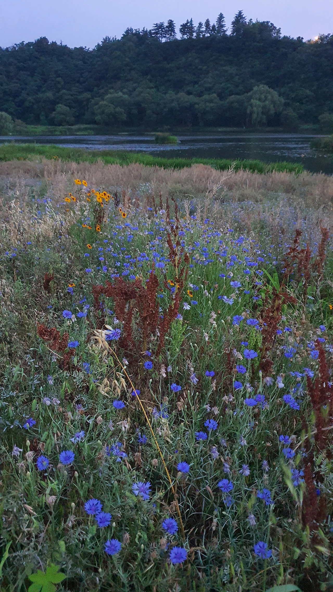 둔치로 내려가자 어두워진 들판이 기다리고 있다. 어스름 속에서 들꽃들이 은은하게 색을 발하며 살랑인다! 너네 밤에 보니 더 예뻐 보이네? 이래서 밤엔 뭐든 달라 보이나 보다.