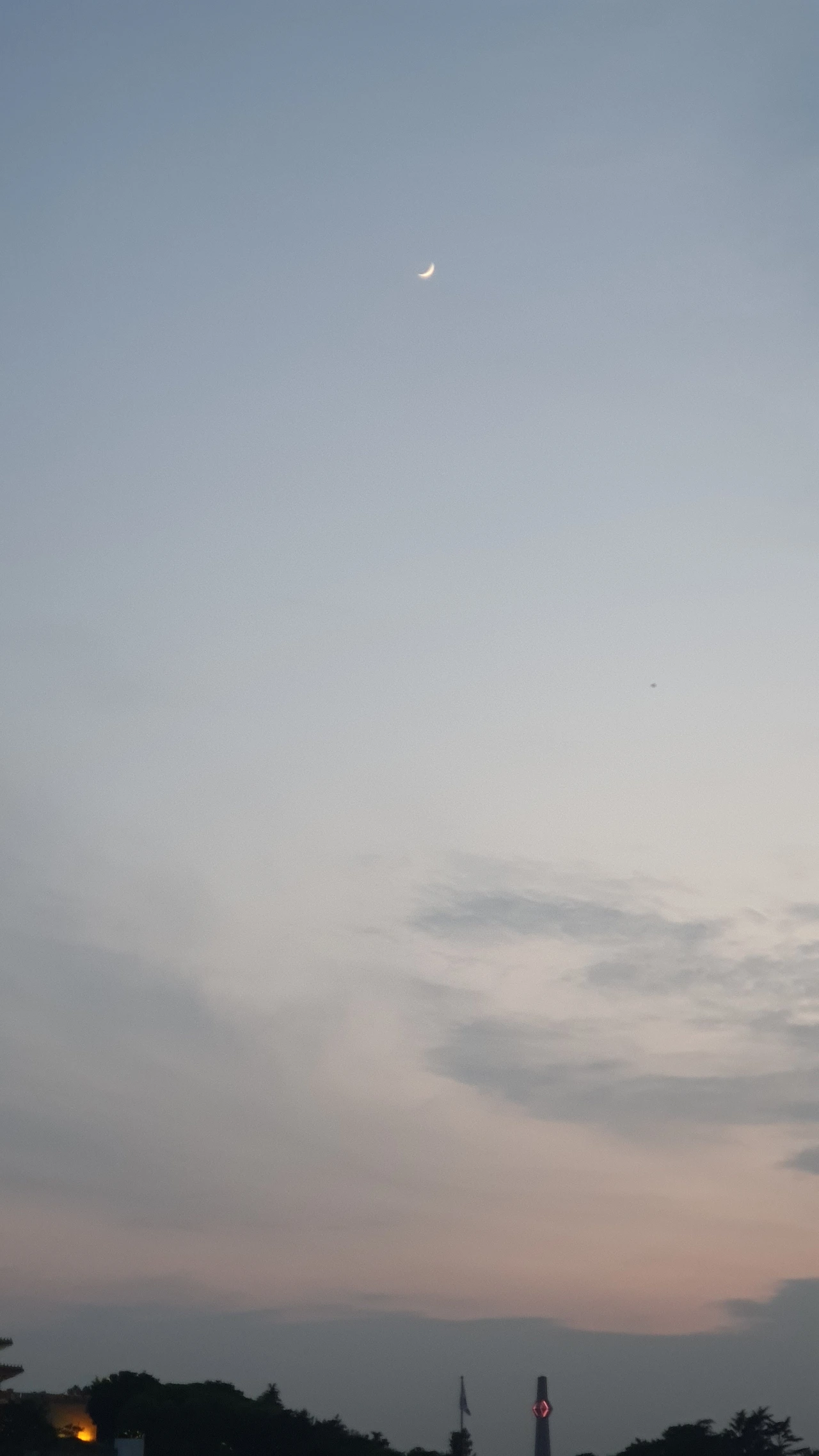 다리를 지나 둔치에 도착했다. 탁 트인 하늘이 먼저 보인다. 희뿌연 하늘엔 해가 미처 끌어가지 못한 미미한 핑크빛 베일 자락이 남아있다. 그 위로 손톱달이 아스라이 떨어져 있다.