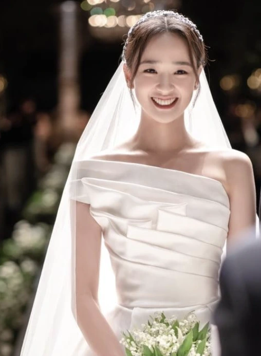 두 번째는 내 드레스의 톤이다. 웜톤 드레스는 보통 미카도 실크드레스다. 두께감이 있고 모양이 확실하게 잡히는 소재다.