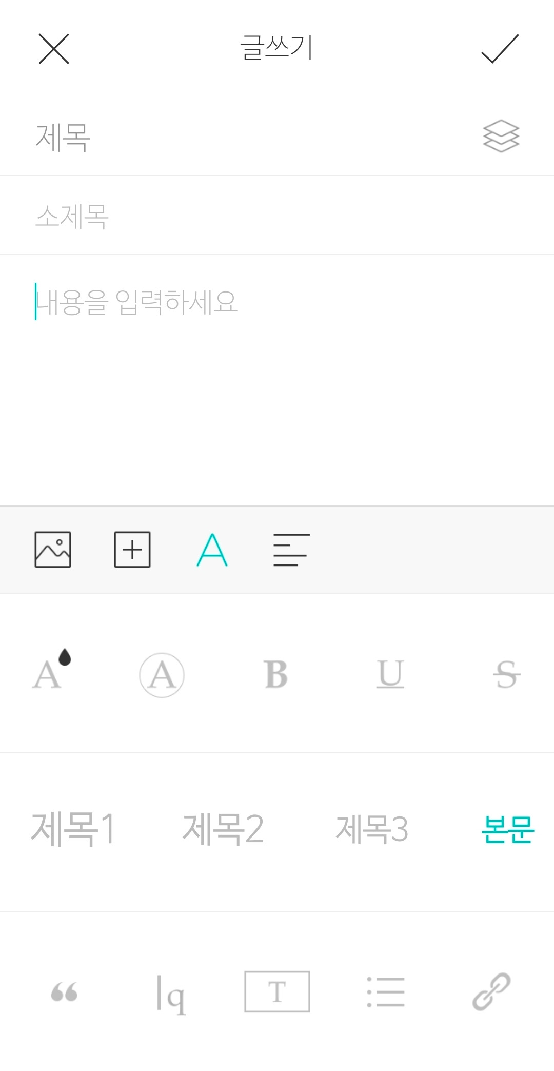 가장 아래, 정렬 버튼이 있다. 가끔 중앙 정렬로 잘못 눌러진 경우가 생긴다. 브런치에서는 중앙 정렬로 보면 글 호흡이 끊기니 조심하자.