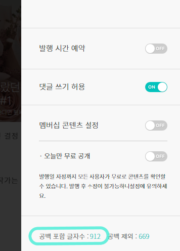 긴지 짧은지는? 지난 회차에 알려드렸듯 발행버튼을 누르고 끝까지 내려보면 글자수를 확인할 수 있다. (모바일에서 쓸 때는 안 된다) 공백 포함으로 2천 자 이상이 되면 길게 느껴질 확률이 높아진다.