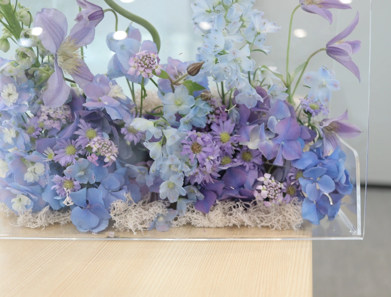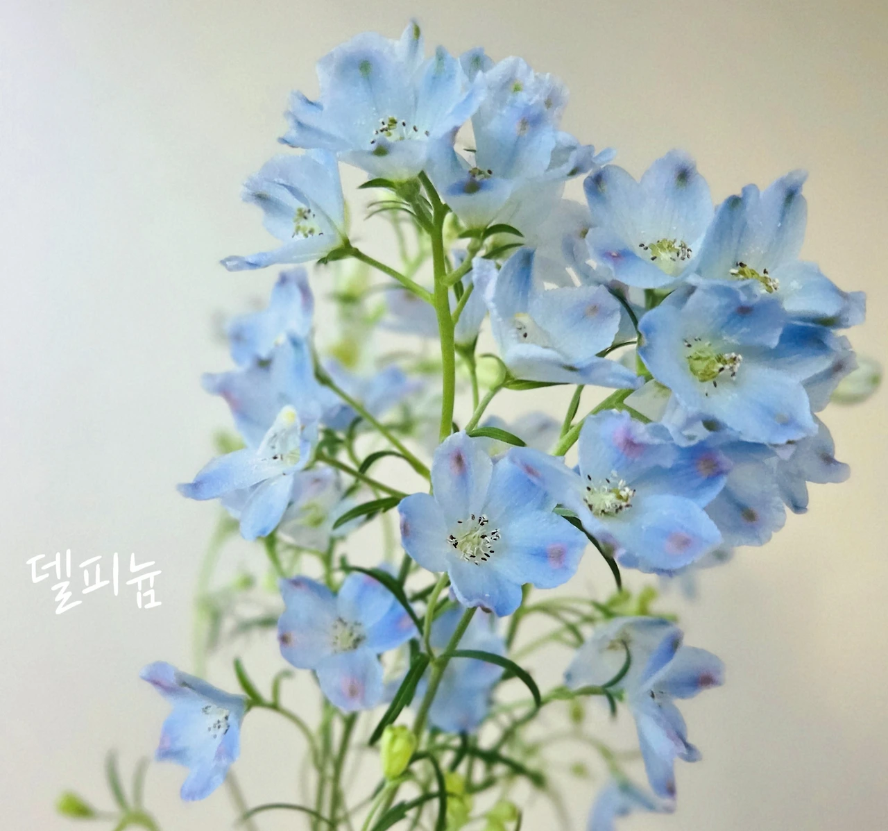 보라만으로 답답해 보이지 않도록, 시폰 커튼처럼 투명한 델피늄이 있어야 한다. "이 꽃이 있으니 확실히 예쁘네요!"라고들 해서 뿌듯했다.